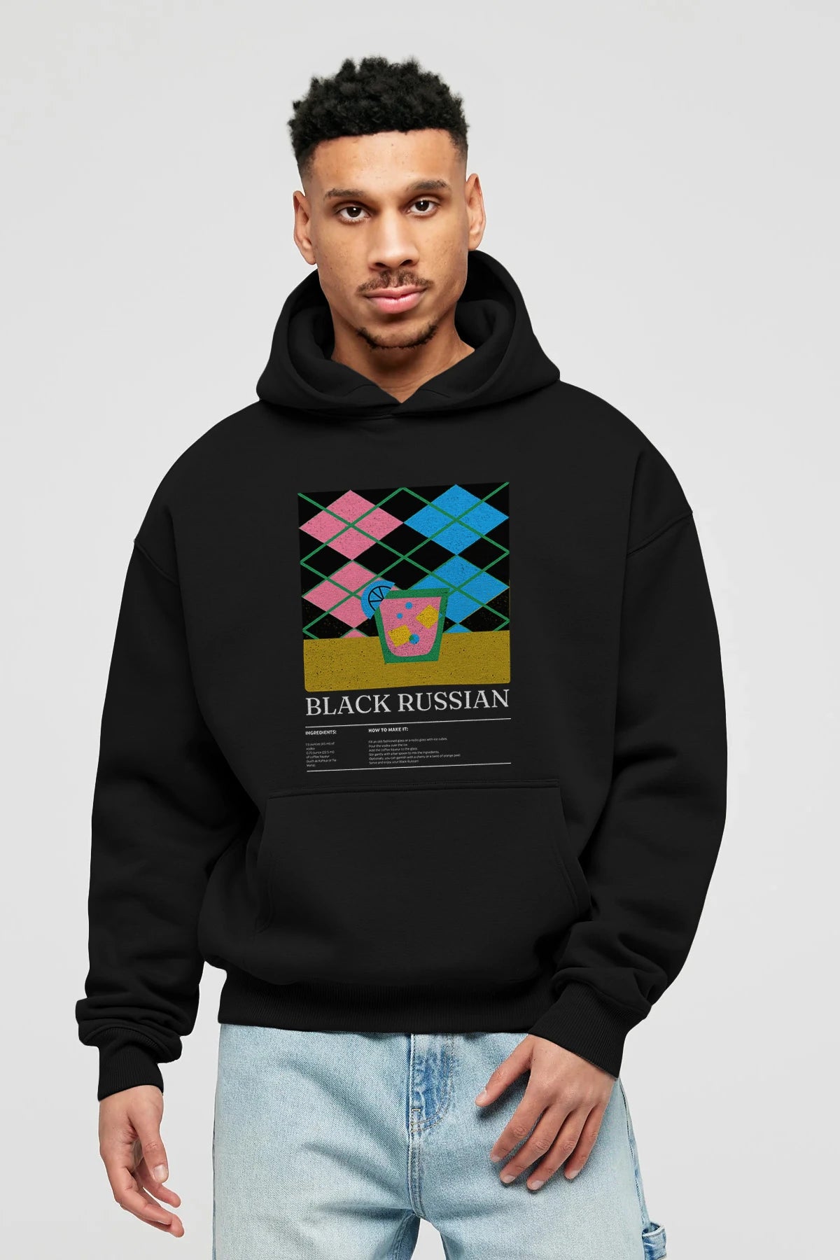 Black Russian Kokteyl ön Baskılı Hoodie Oversize Kapüşonlu Sweatshirt Erkek Kadın