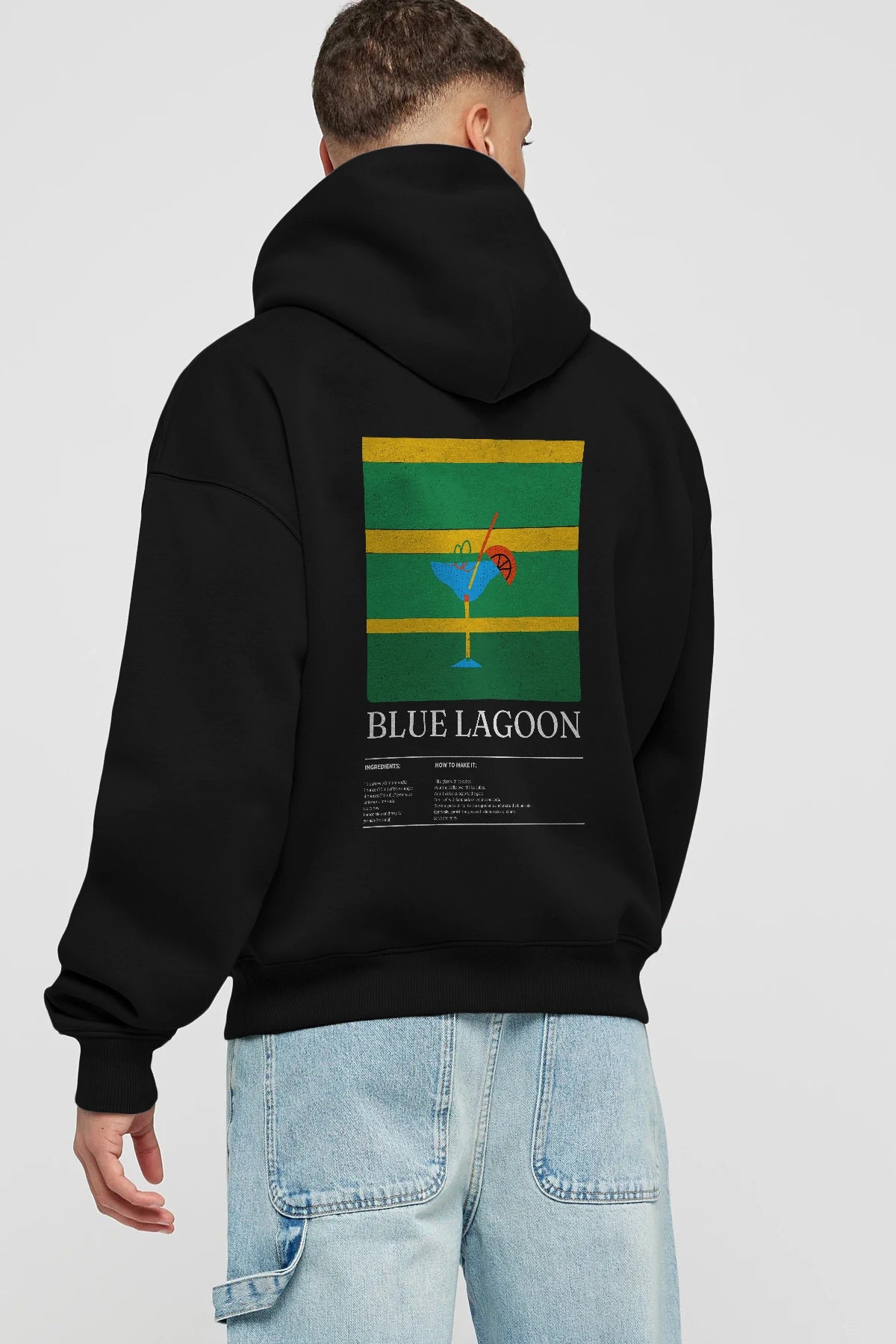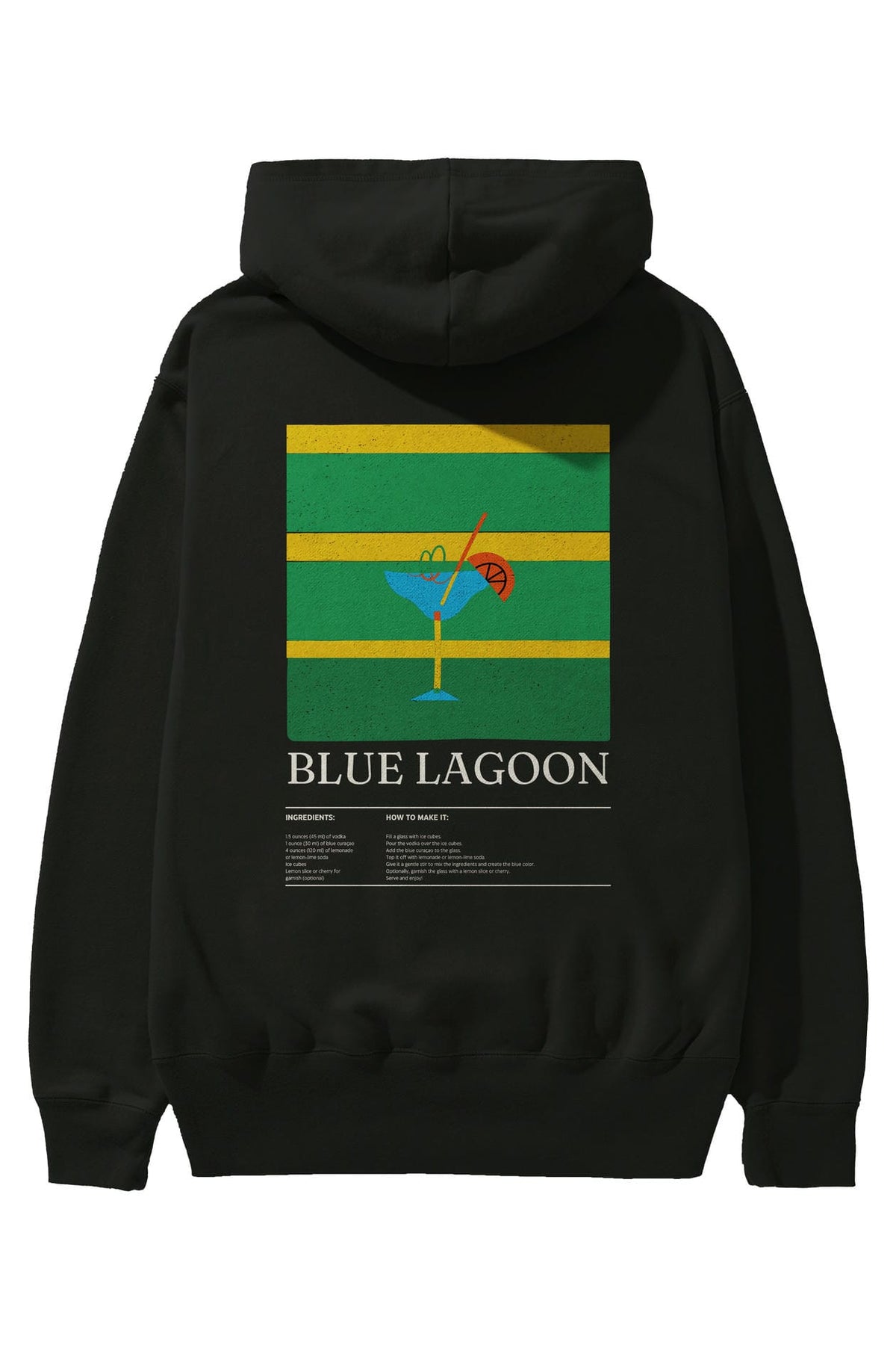 Blue Lagoon Kokteyl Arka Baskılı Hoodie Oversize Kapüşonlu Sweatshirt Erkek Kadın