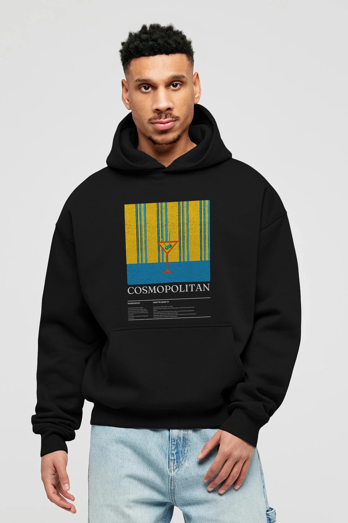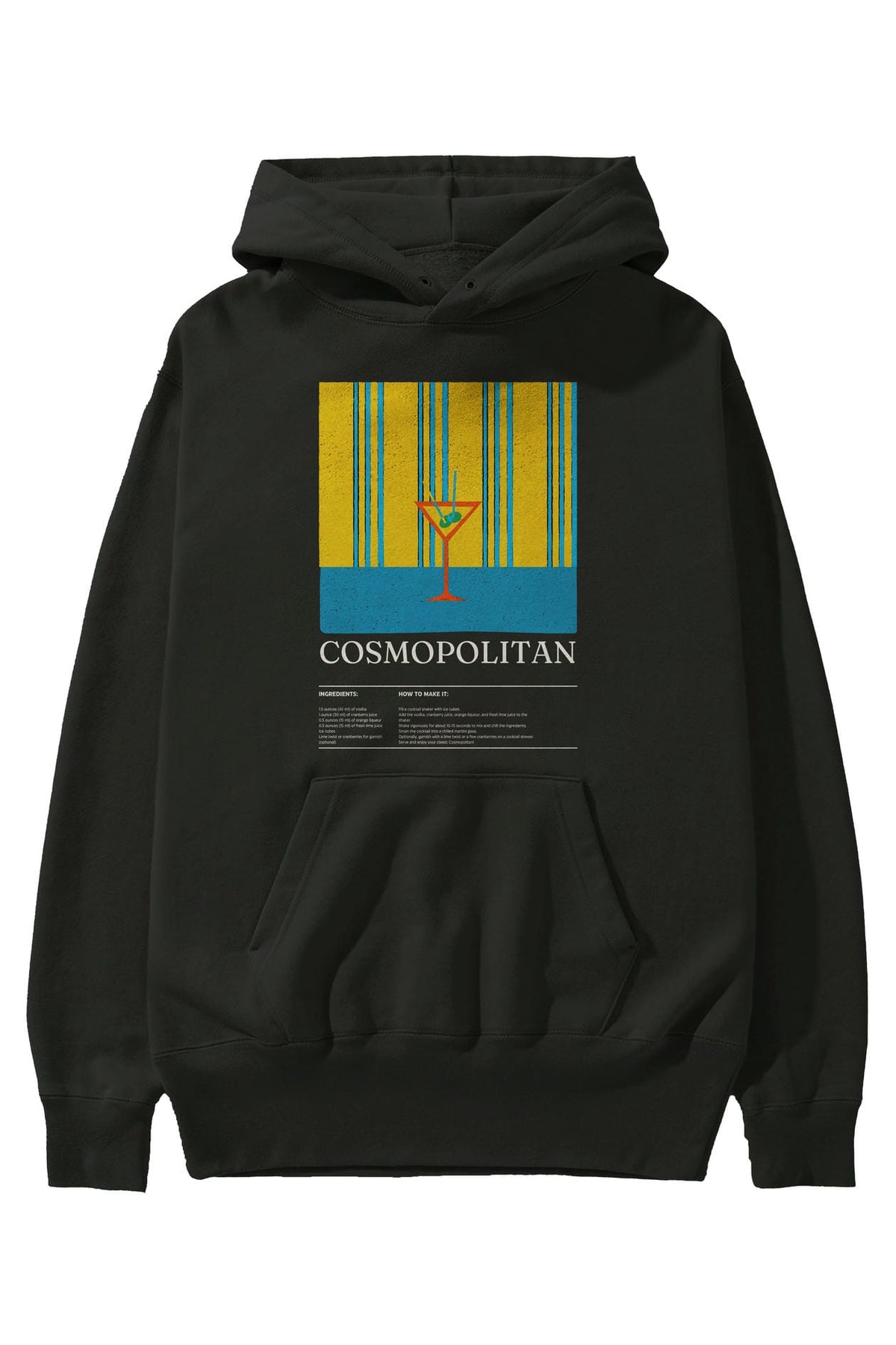 Cosmopolitan Kokteyl ön Baskılı Hoodie Oversize Kapüşonlu Sweatshirt Erkek Kadın