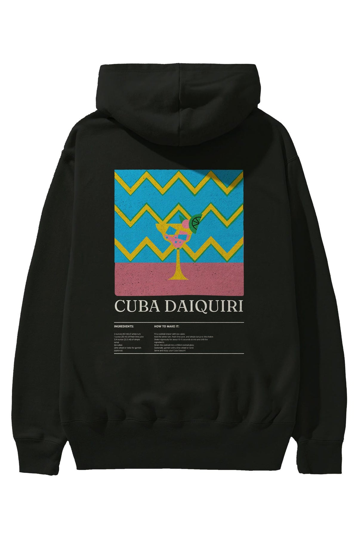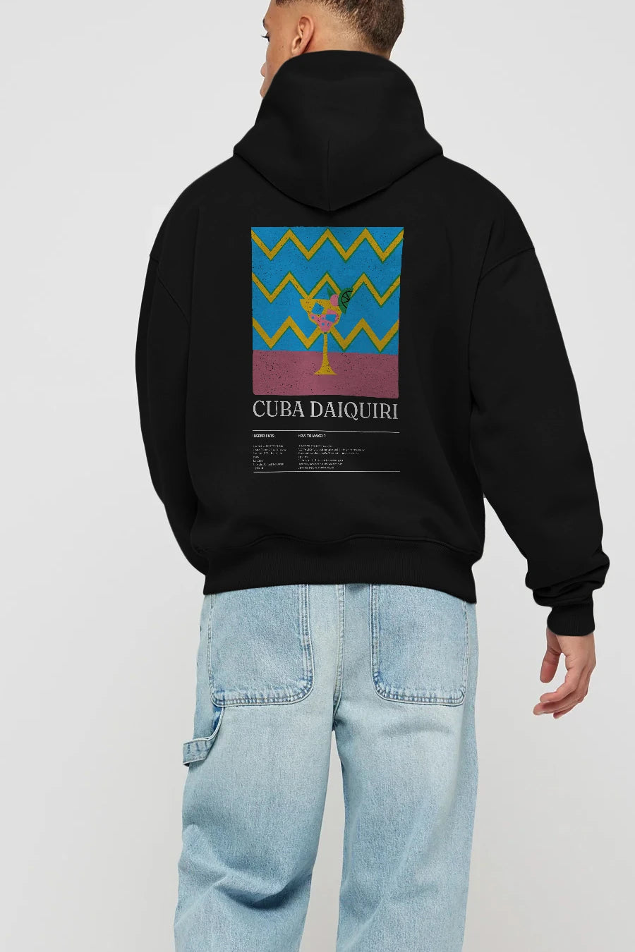 Cuba Daiquiri Kokteyl Arka Baskılı Hoodie Oversize Kapüşonlu Sweatshirt Erkek Kadın