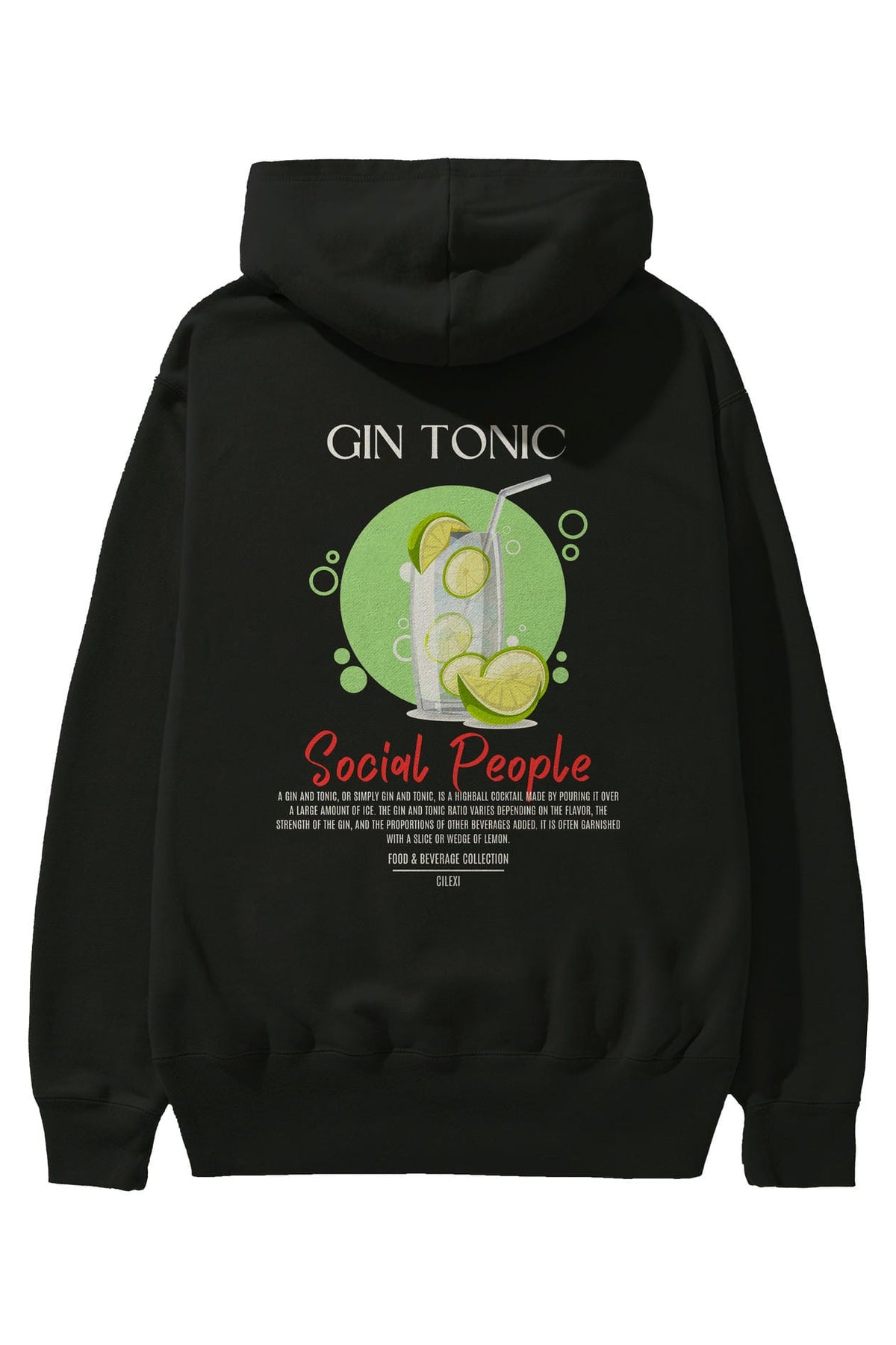 Gin Tonic Kokteyl Arka Baskılı Hoodie Oversize Kapüşonlu Sweatshirt Erkek Kadın