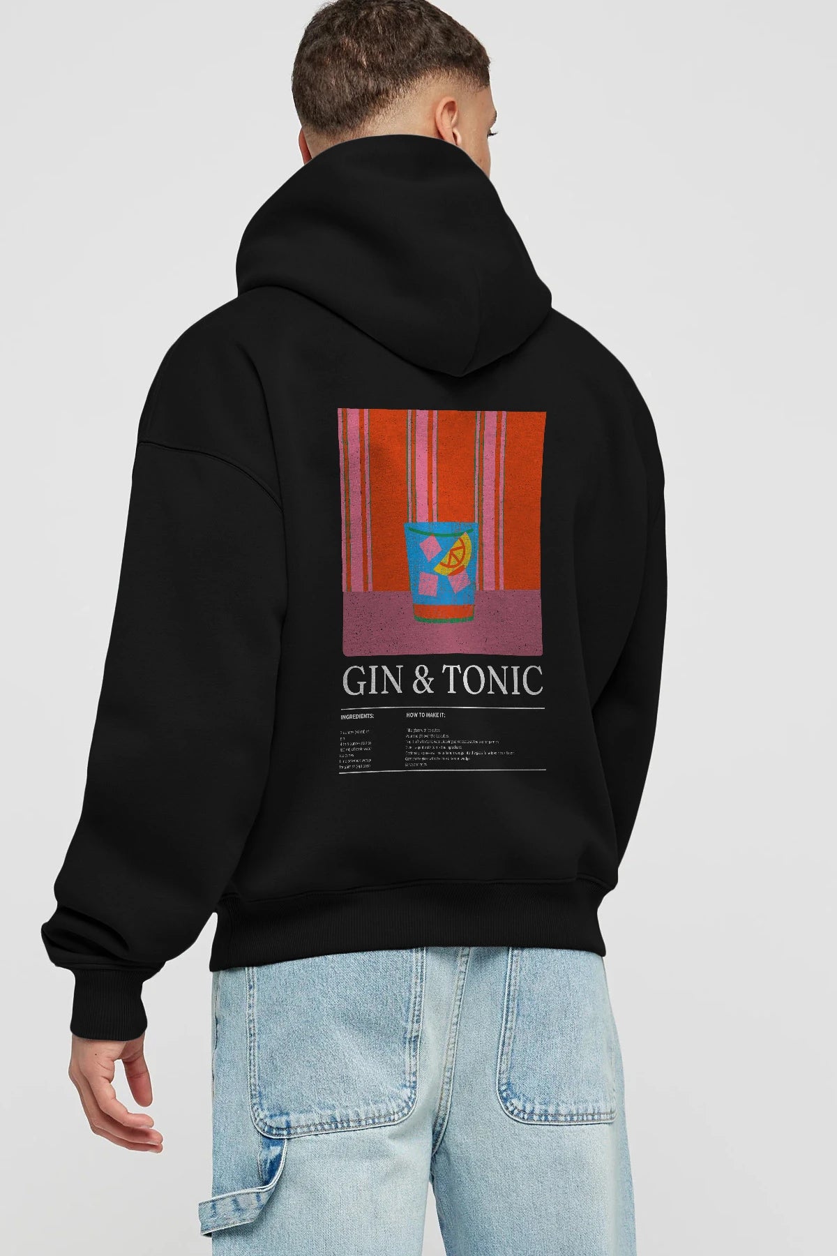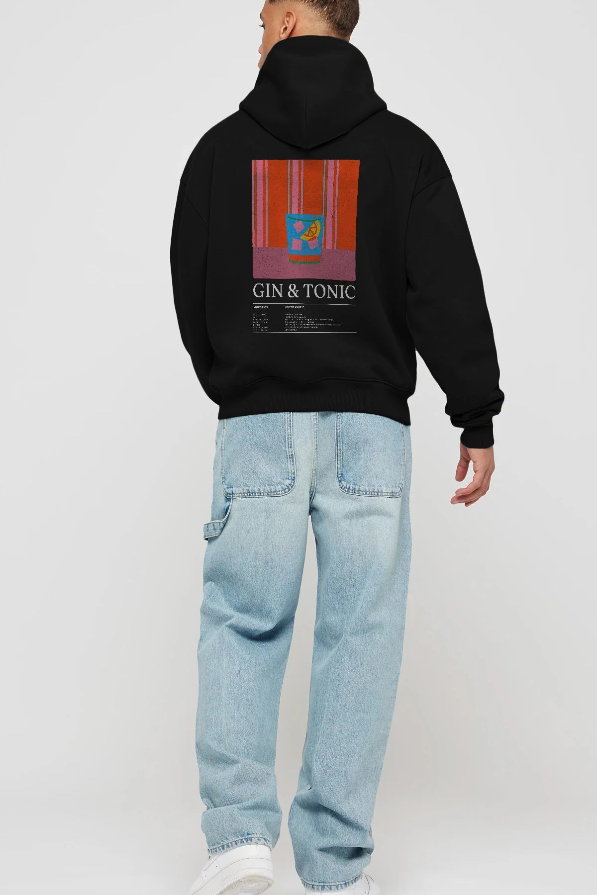 Gin tonik Kokteyl Arka Baskılı Hoodie Oversize Kapüşonlu Sweatshirt Erkek Kadın