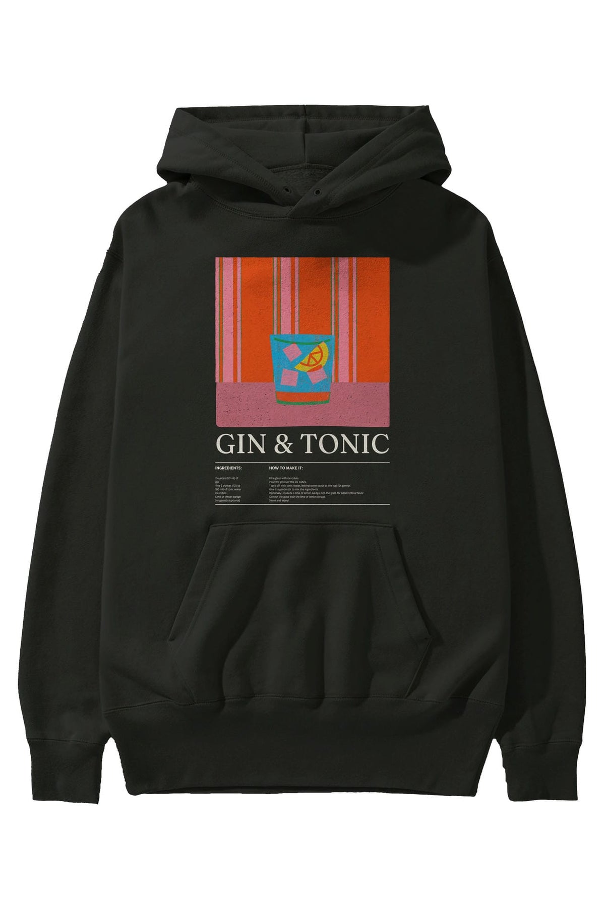 Gin tonik Kokteyl ön Baskılı Hoodie Oversize Kapüşonlu Sweatshirt Erkek Kadın