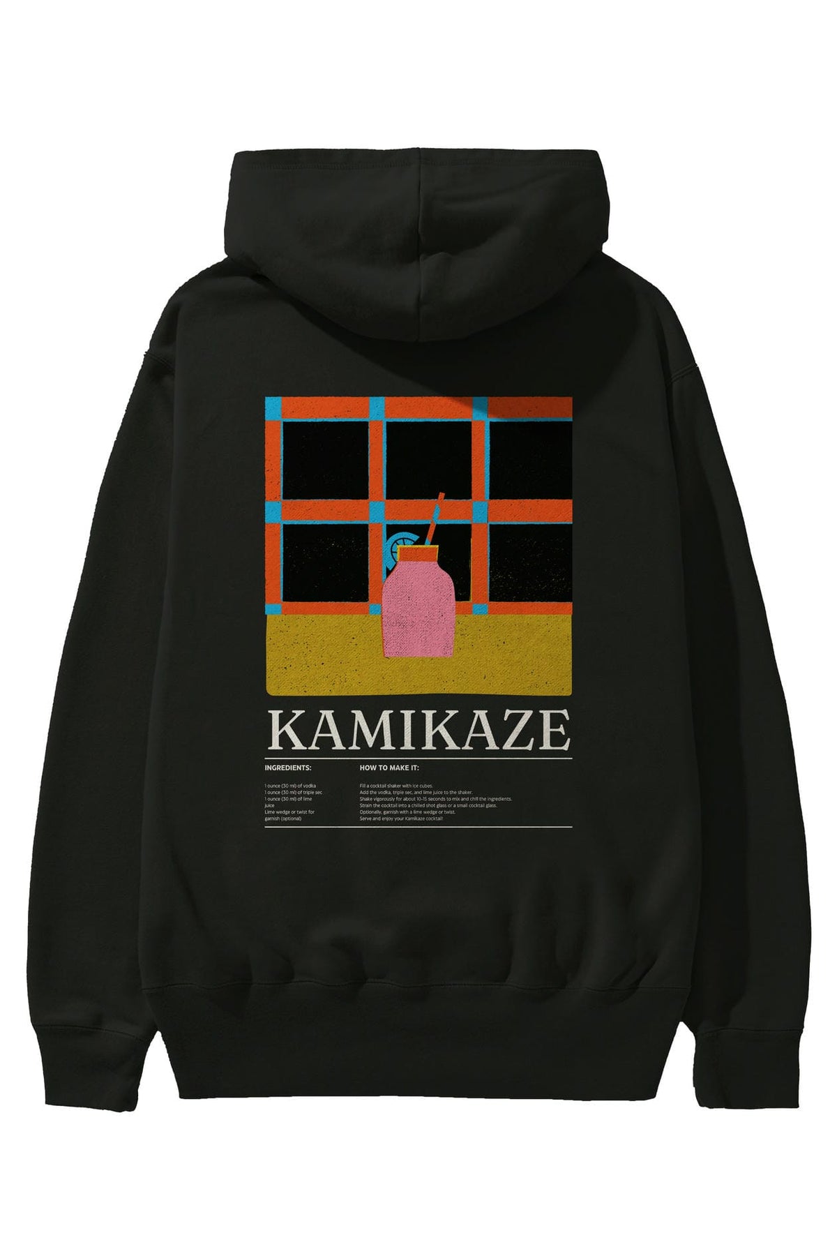 Kamikaze Kokteyl Arka Baskılı Hoodie Oversize Kapüşonlu Sweatshirt Erkek Kadın