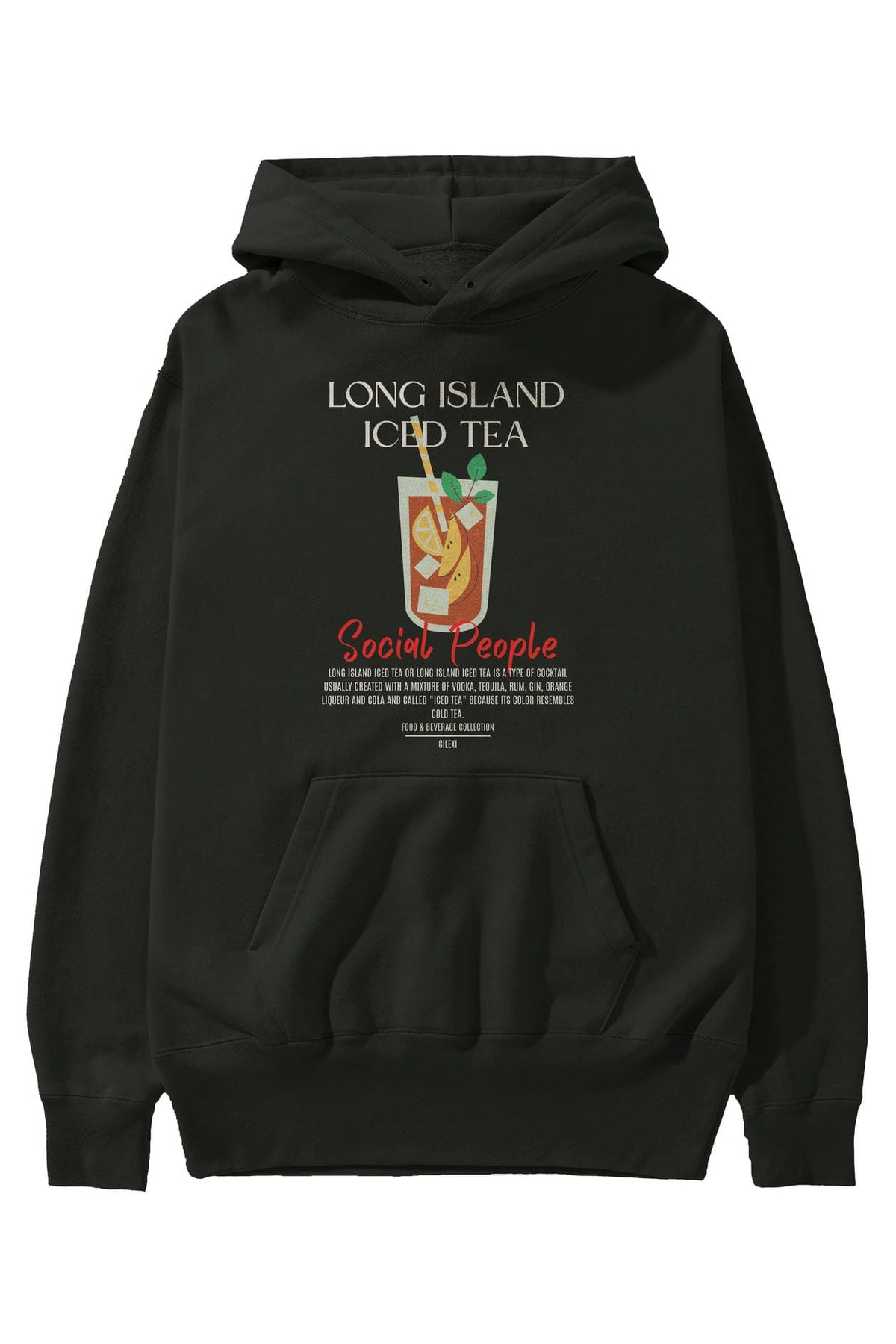 Long Island iced tea Kokteyl Ön Baskılı Hoodie Oversize Kapüşonlu Sweatshirt Erkek Kadın