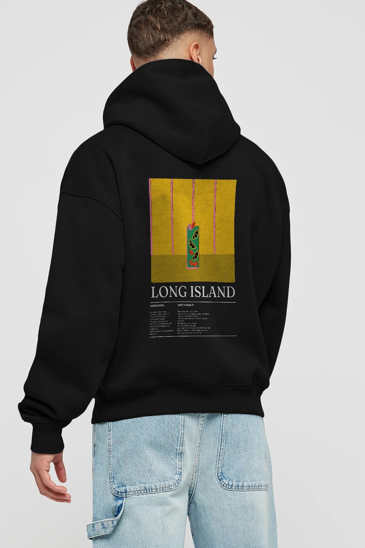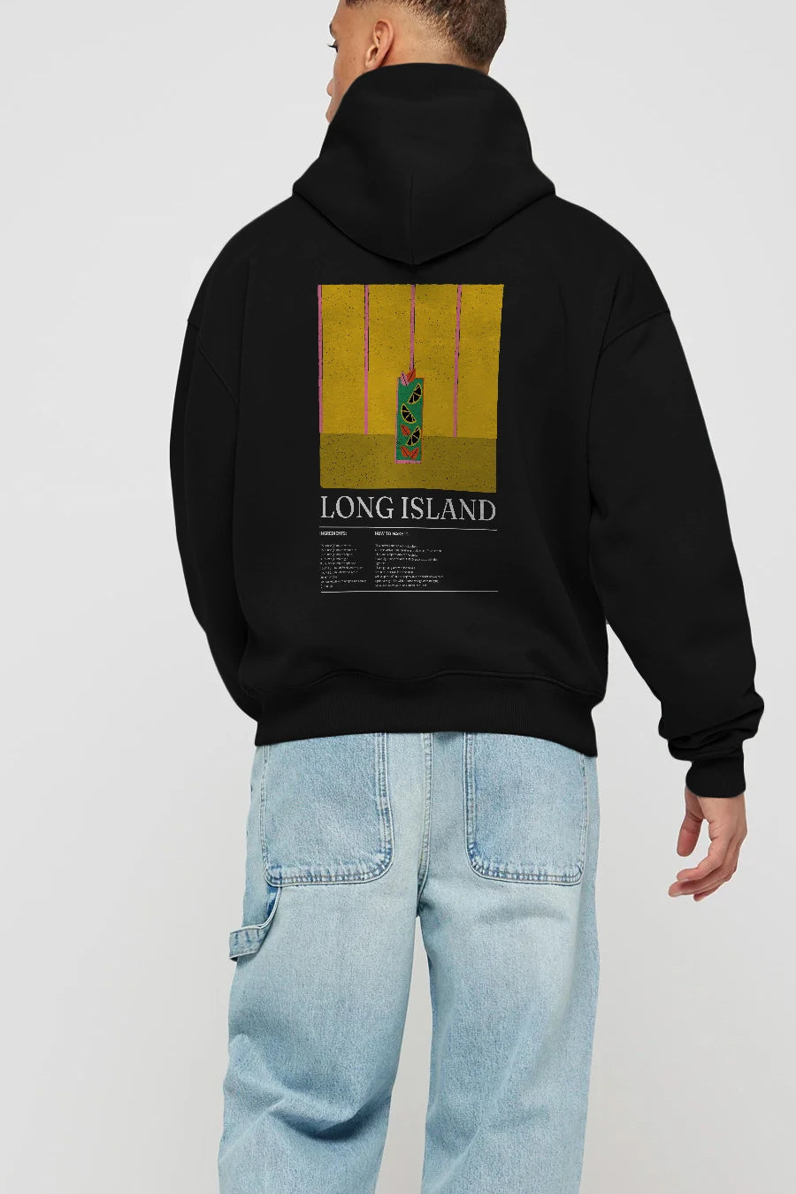 Long Island Kokteyl Arka Baskılı Hoodie Oversize Kapüşonlu Sweatshirt Erkek Kadın