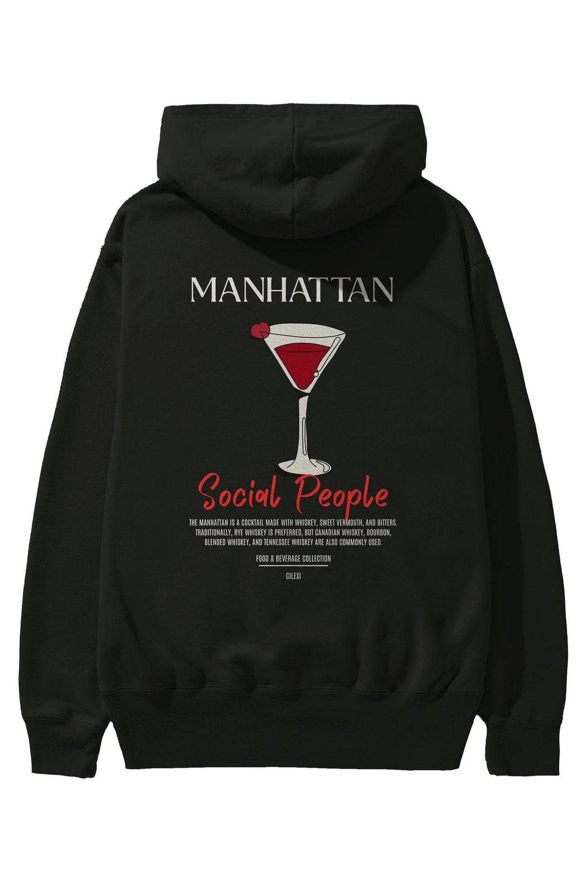 Manhattan Kokteyl Arka Baskılı Hoodie Oversize Kapüşonlu Sweatshirt Erkek Kadın