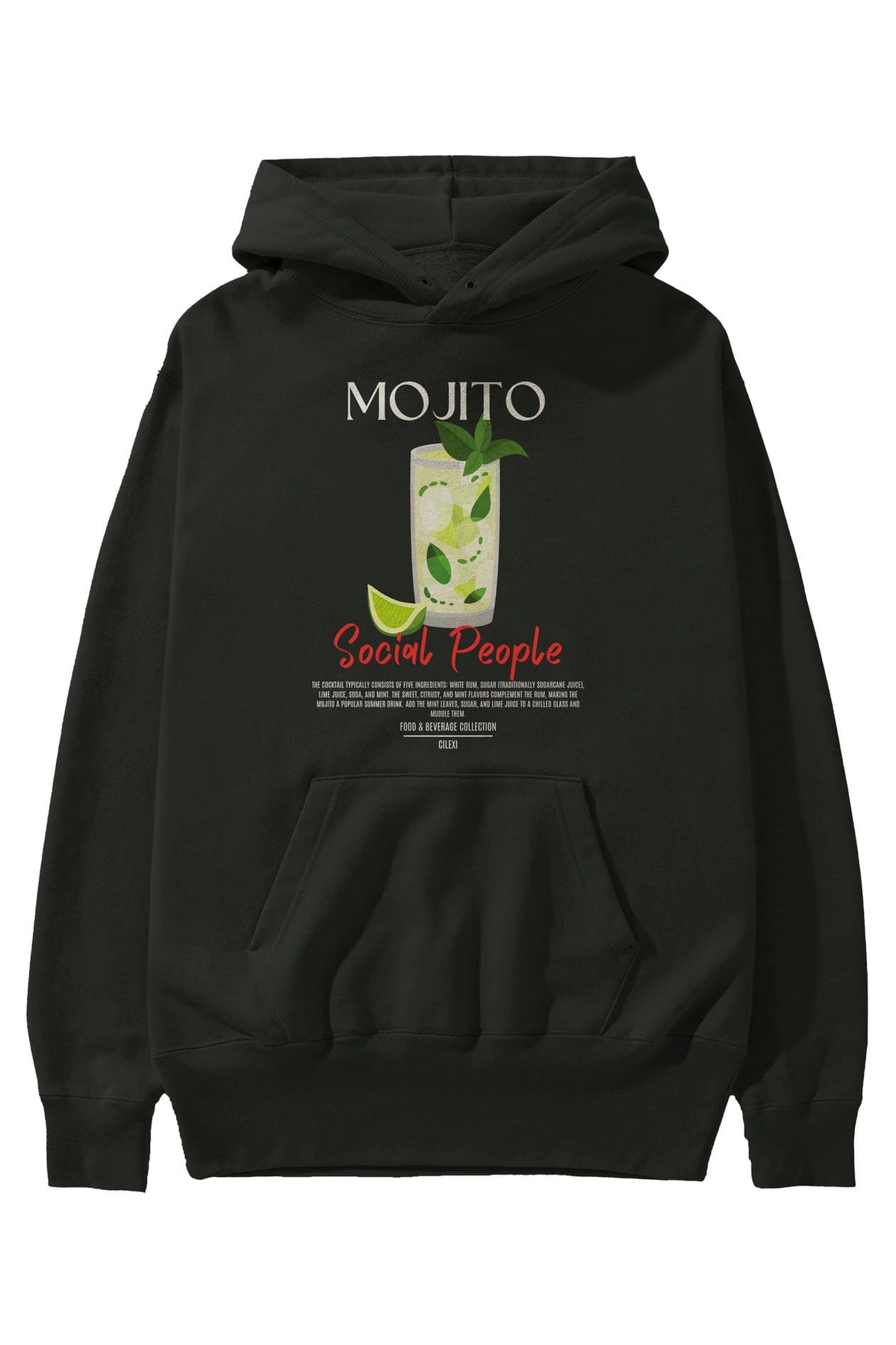 Mojito Kokteyl Ön Baskılı Hoodie Oversize Kapüşonlu Sweatshirt Erkek Kadın
