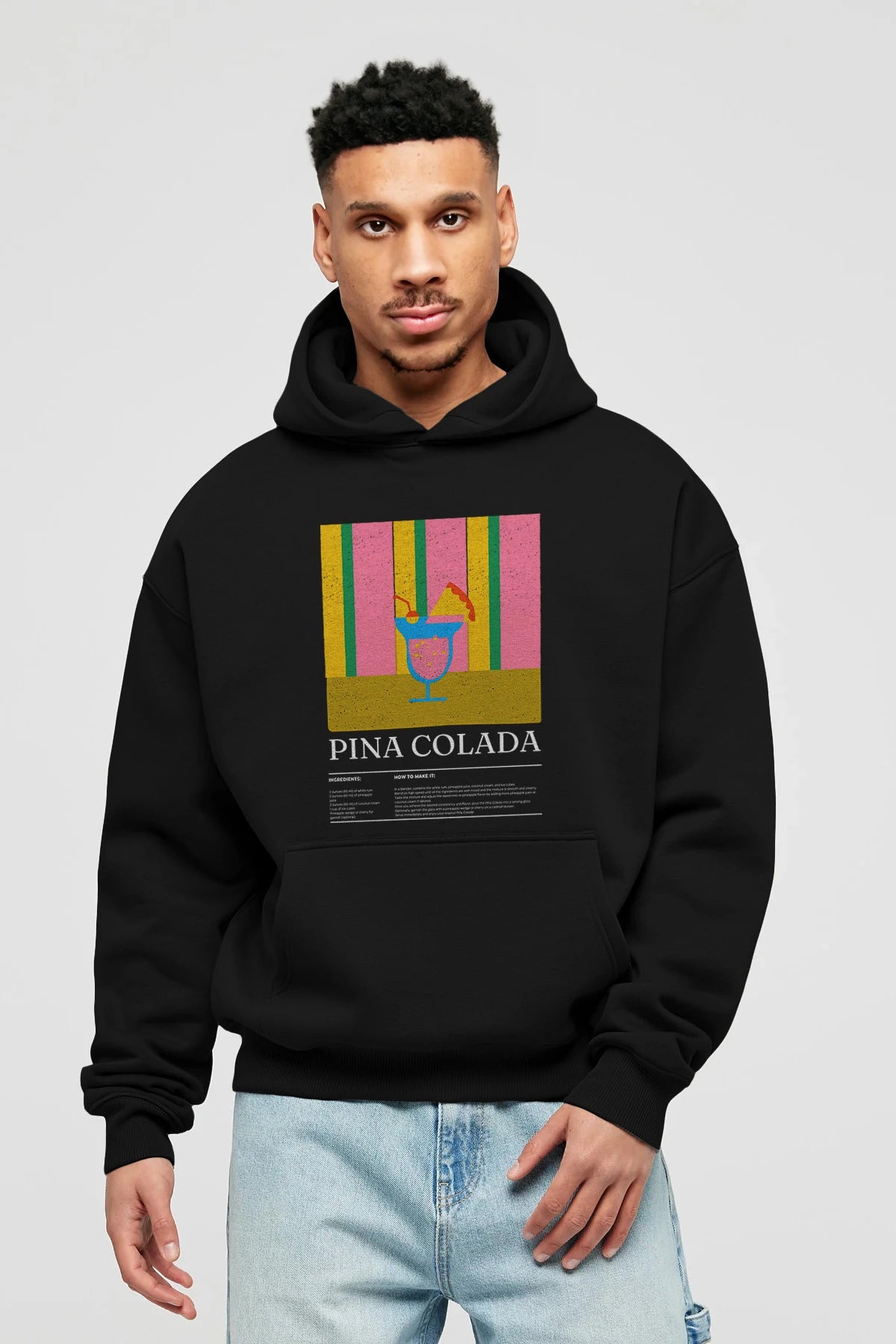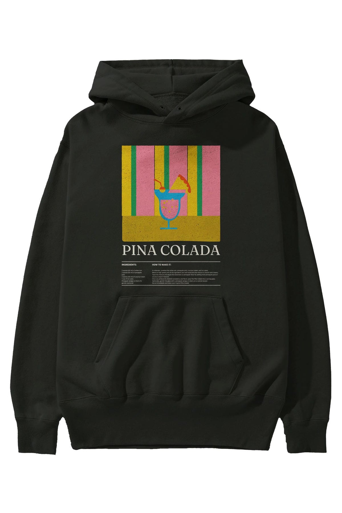 Pina Colada Kokteyl ön Baskılı Hoodie Oversize Kapüşonlu Sweatshirt Erkek Kadın