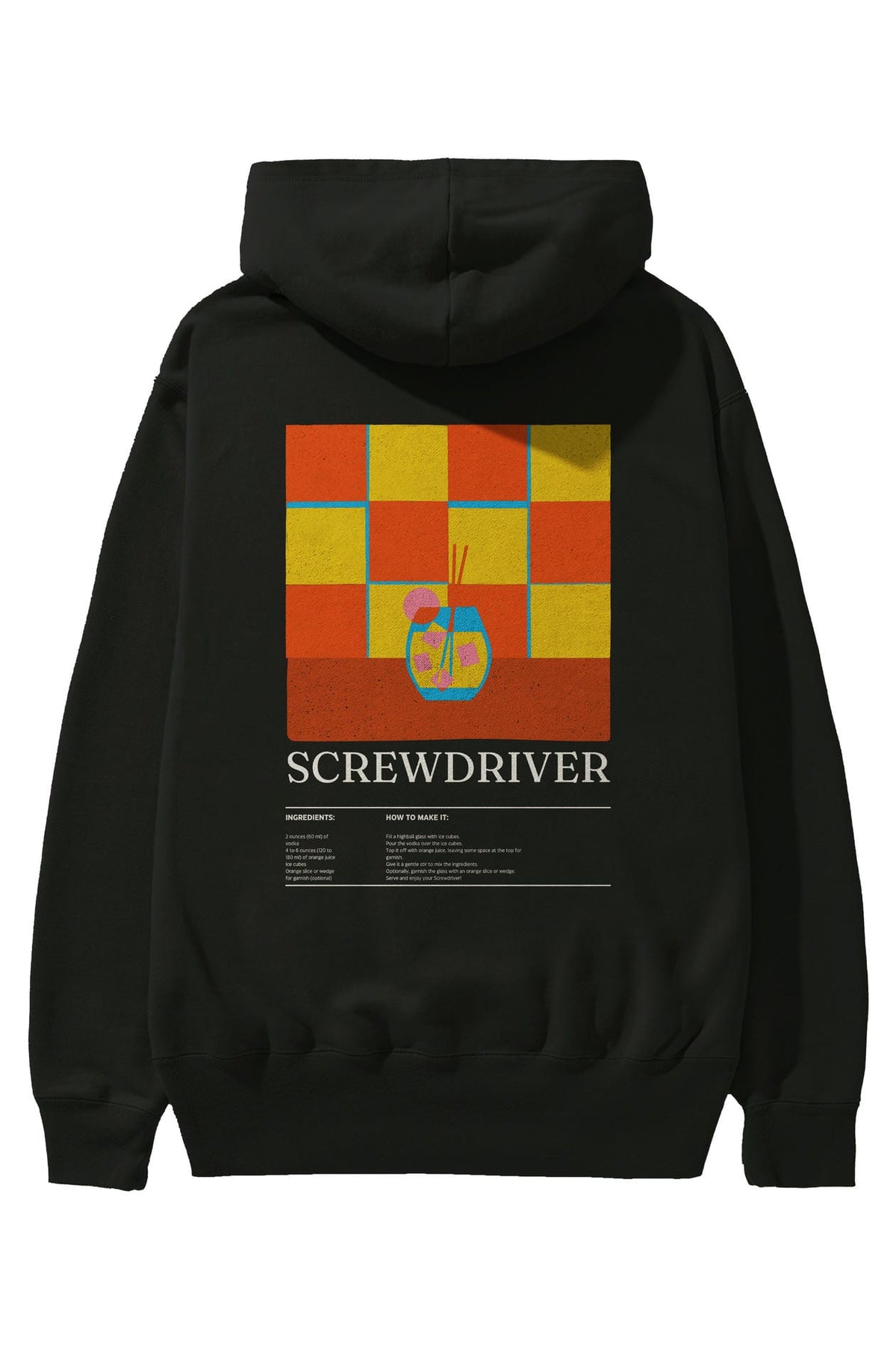 Screwdriver Kokteyl Arka Baskılı Hoodie Oversize Kapüşonlu Sweatshirt Erkek Kadın