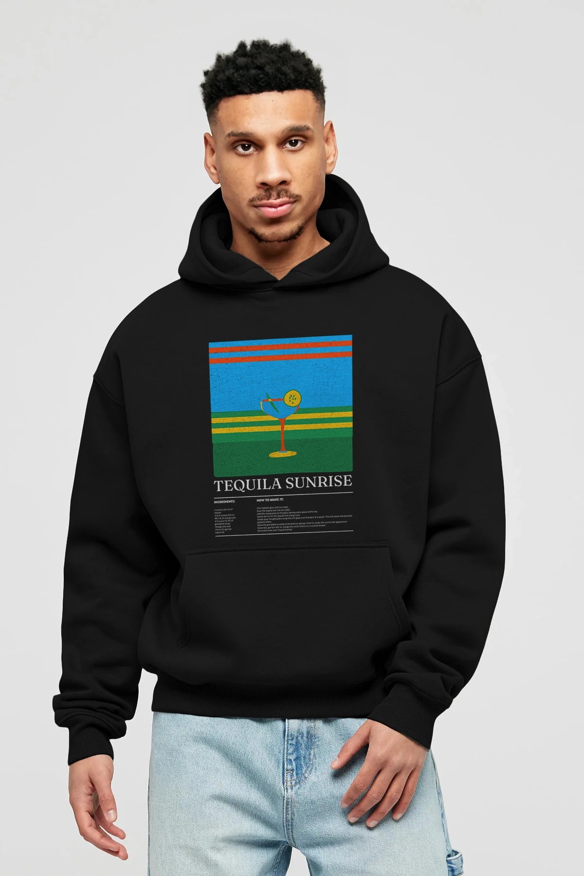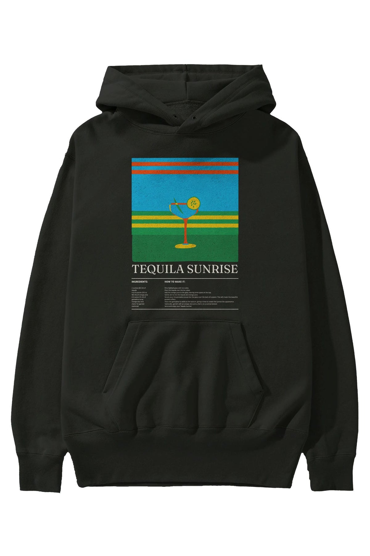Tequila Sunrise Kokteyl ön Baskılı Hoodie Oversize Kapüşonlu Sweatshirt Erkek Kadın