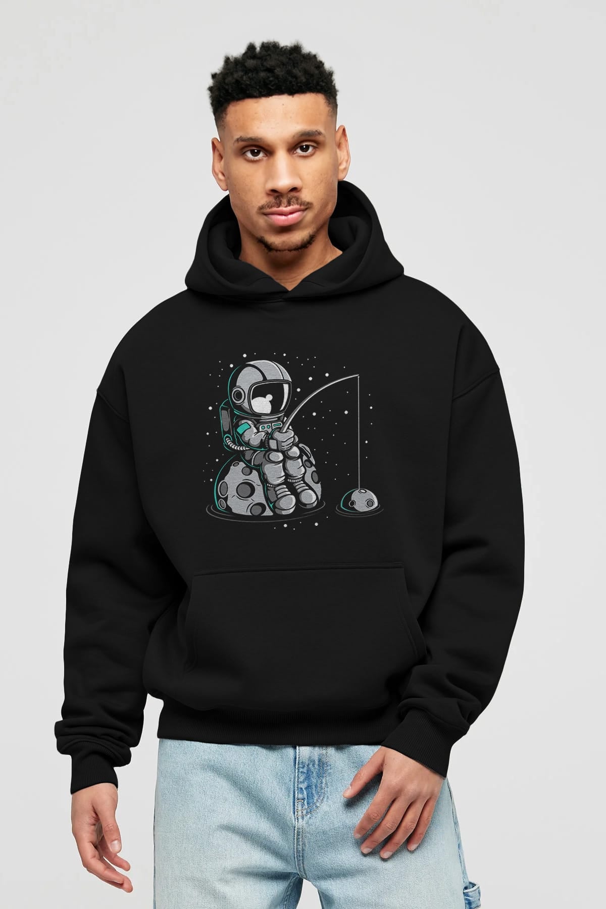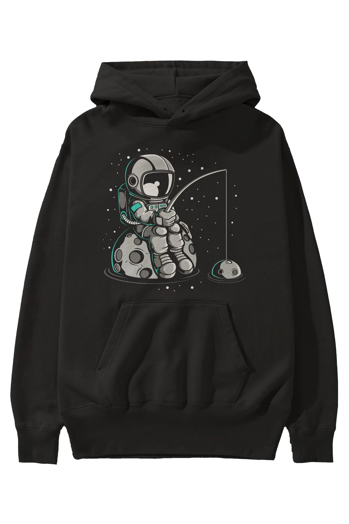Astronaut Fishing Ön Baskılı Hoodie Oversize Kapüşonlu Sweatshirt Erkek Kadın Unisex