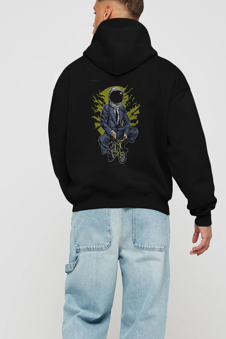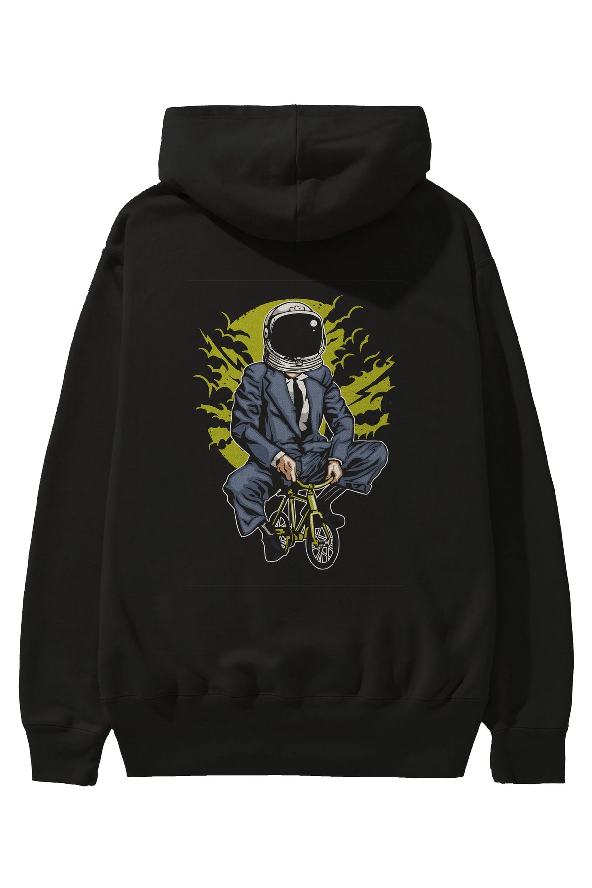 Bike To The Moon Arka Baskılı Hoodie Oversize Kapüşonlu Sweatshirt Erkek Kadın Unisex