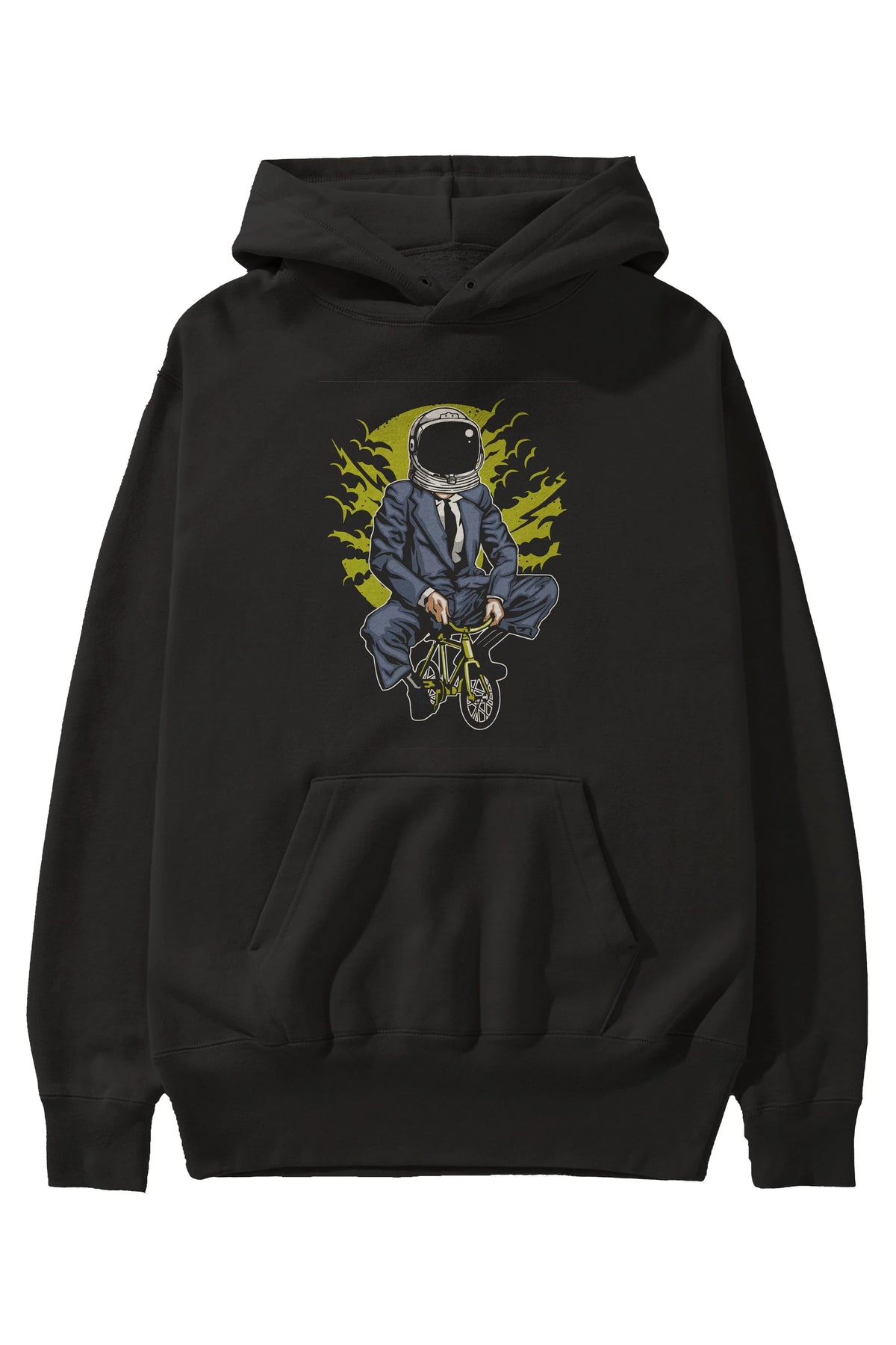 Bike To The Moon Ön Baskılı Hoodie Oversize Kapüşonlu Sweatshirt Erkek Kadın Unisex
