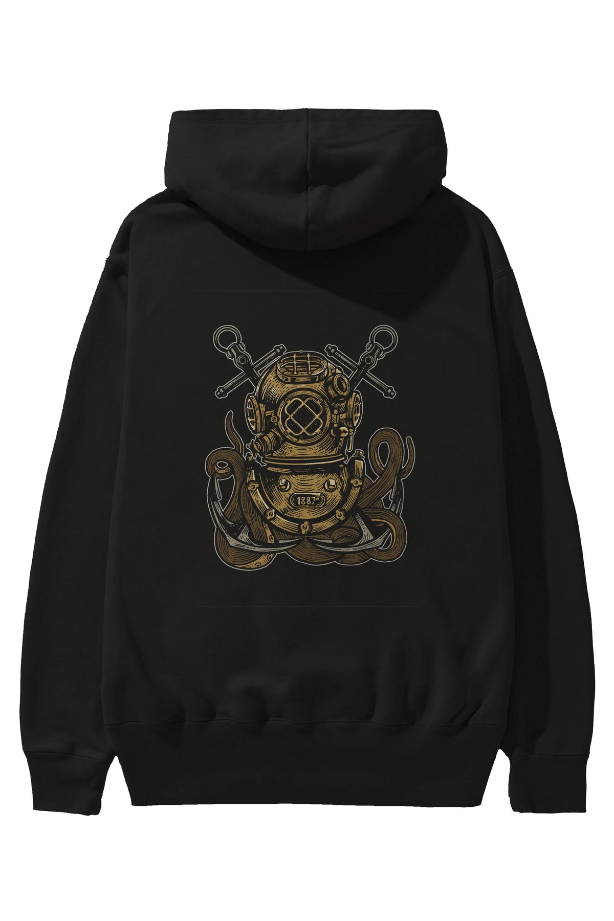 Diver Octopus Arka Baskılı Hoodie Oversize Kapüşonlu Sweatshirt Erkek Kadın Unisex