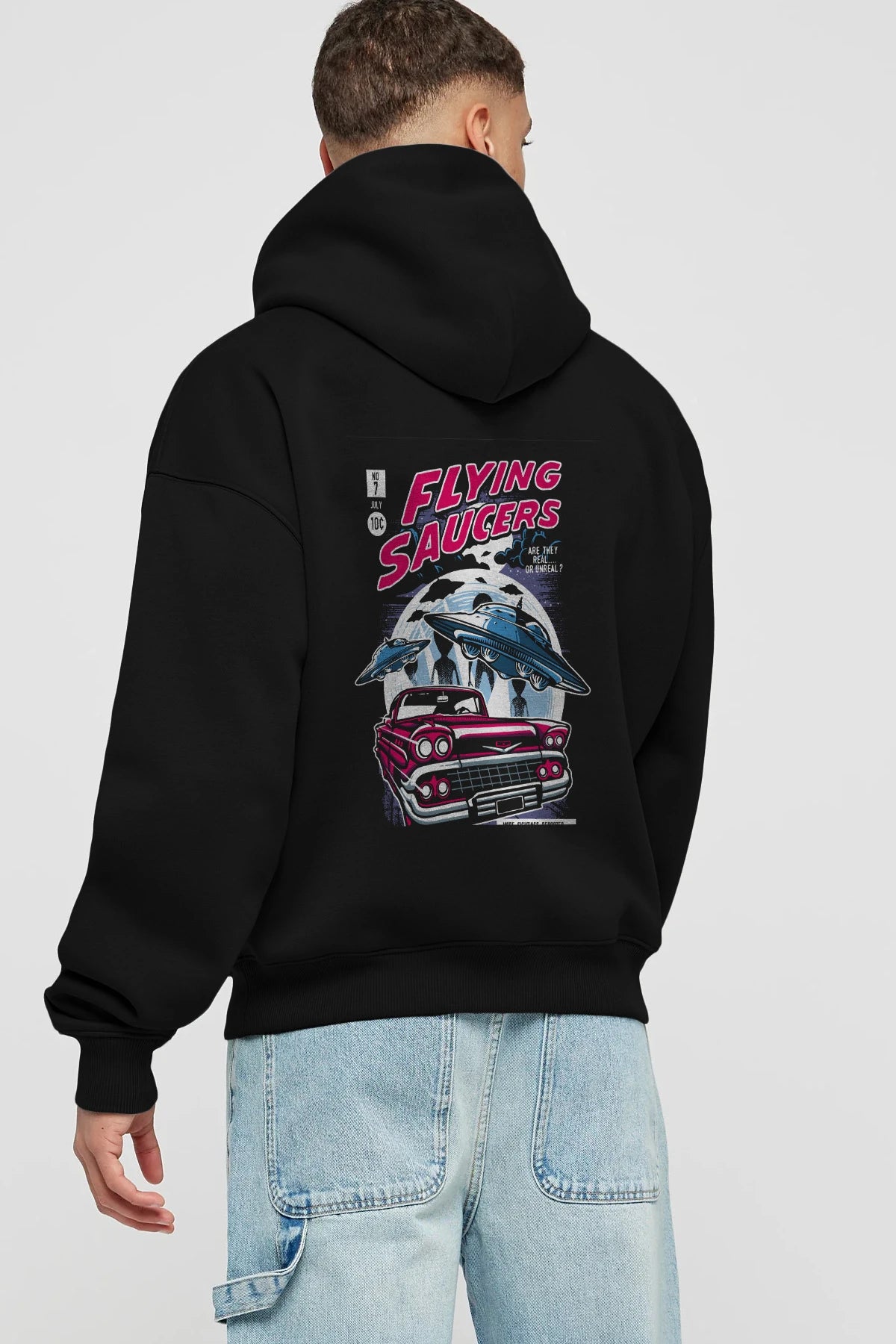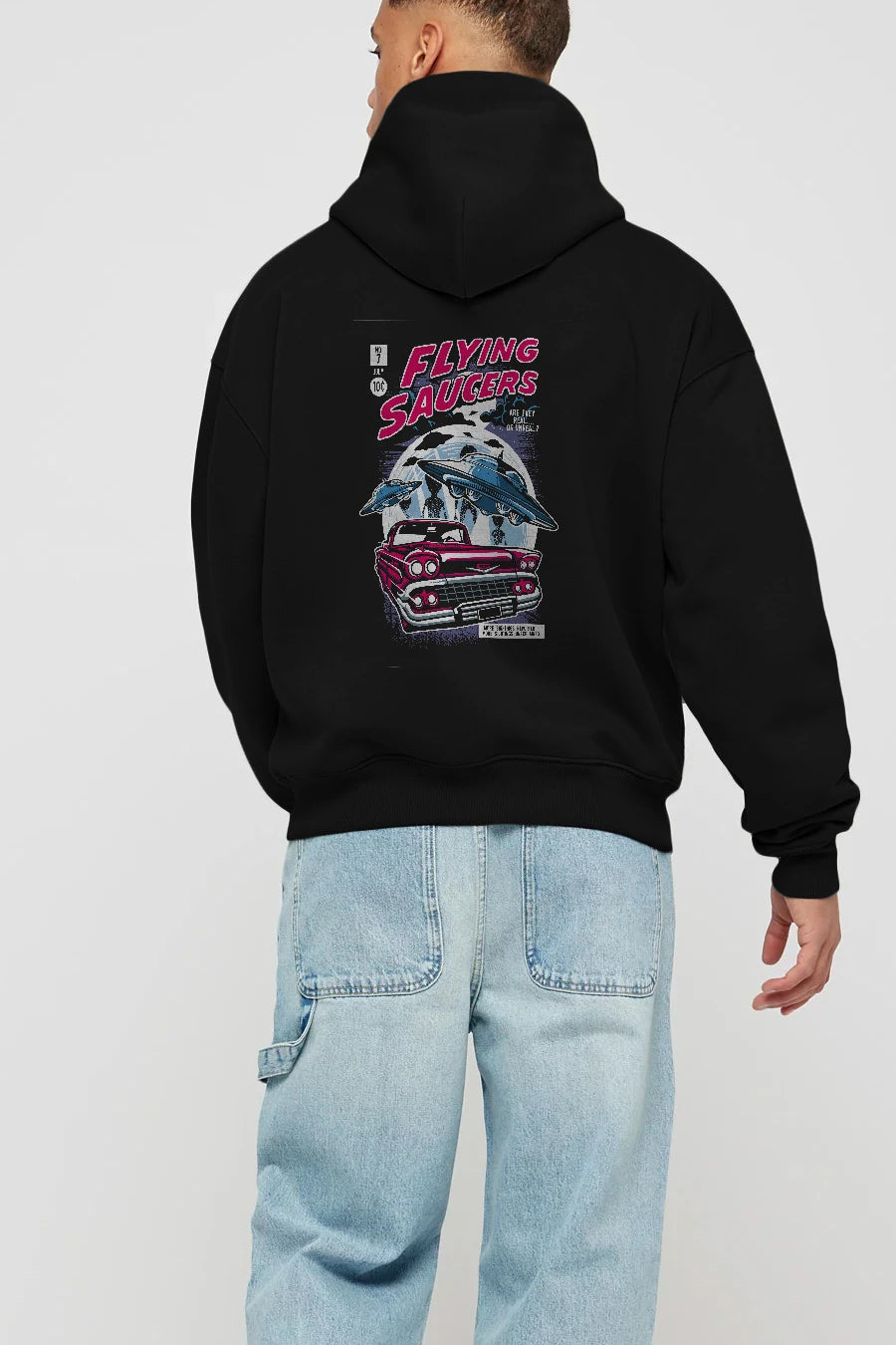 Flying Saucers Arka Baskılı Hoodie Oversize Kapüşonlu Sweatshirt Erkek Kadın Unisex