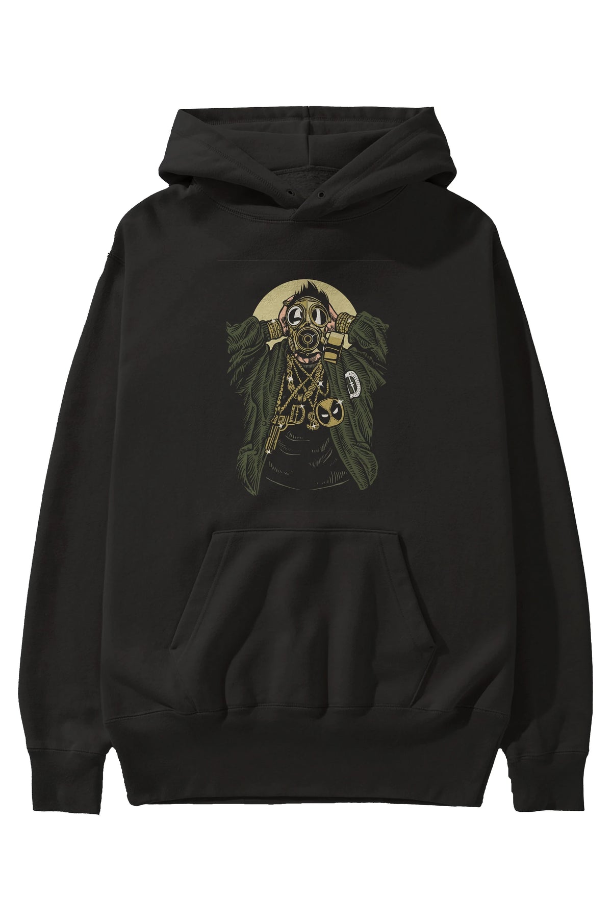 Gasmask Gangsta Ön Baskılı Hoodie Oversize Kapüşonlu Sweatshirt Erkek Kadın Unisex