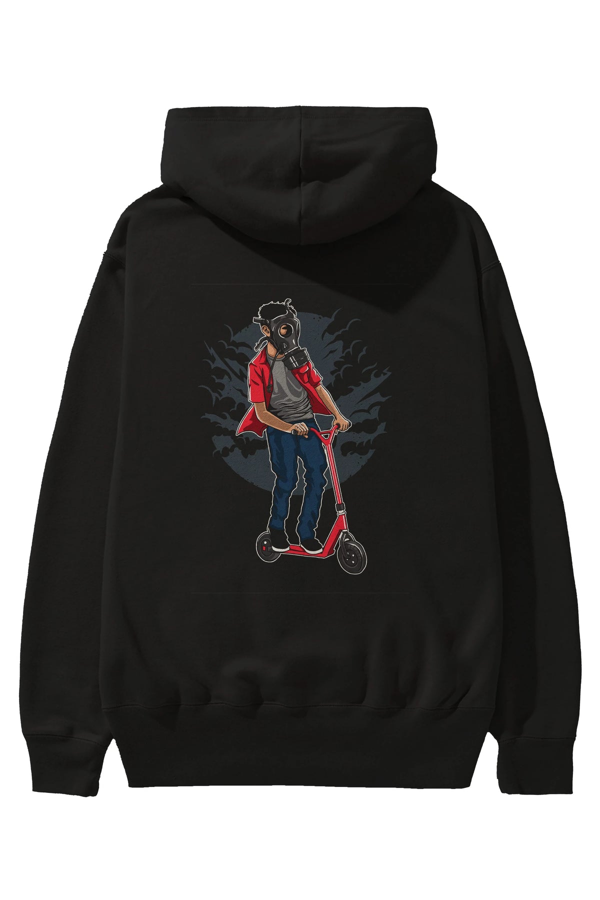 Gasmask Rider Arka Baskılı Hoodie Oversize Kapüşonlu Sweatshirt Erkek Kadın Unisex