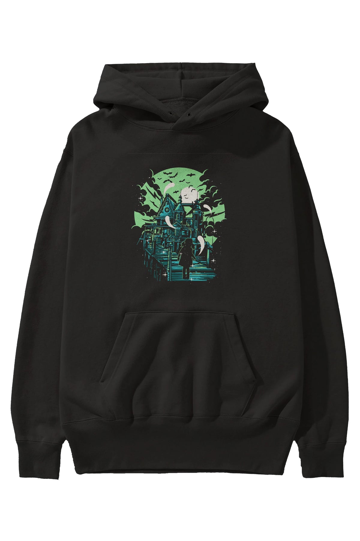 Haunted House Ön Baskılı Hoodie Oversize Kapüşonlu Sweatshirt Erkek Kadın Unisex