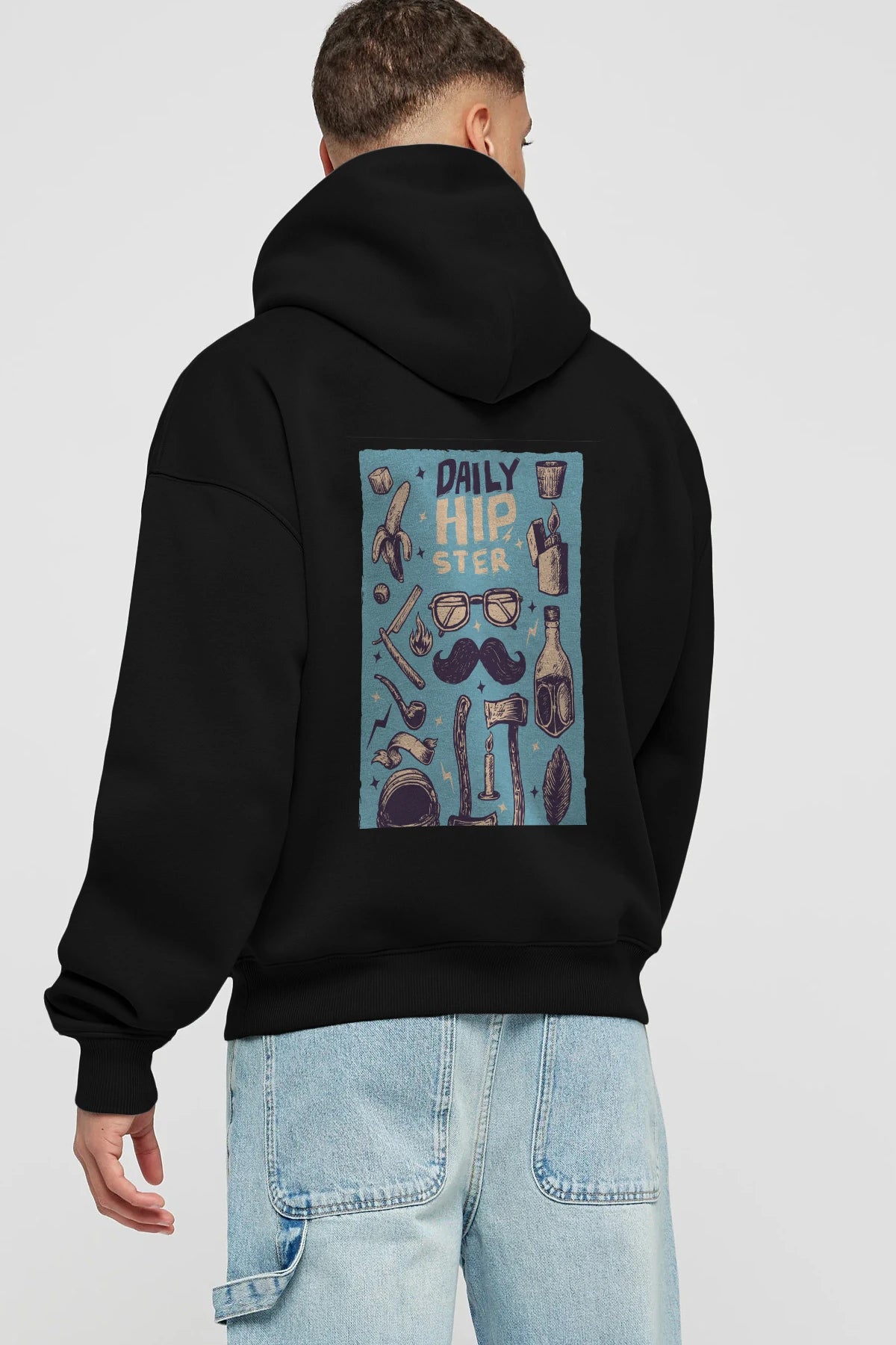 Hipster Arka Baskılı Hoodie Oversize Kapüşonlu Sweatshirt Erkek Kadın Unisex