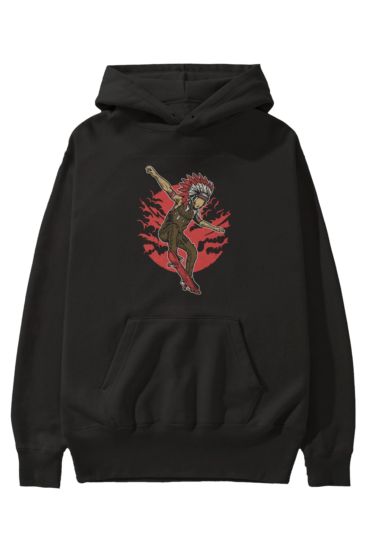 Indian Chief Skateboard Ön Baskılı Hoodie Oversize Kapüşonlu Sweatshirt Erkek Kadın Unisex