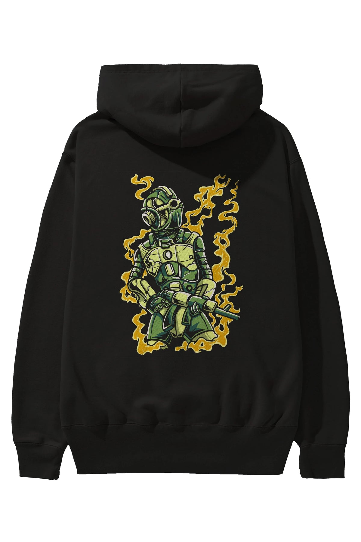Robot Soldier Arka Baskılı Hoodie Oversize Kapüşonlu Sweatshirt Erkek Kadın Unisex