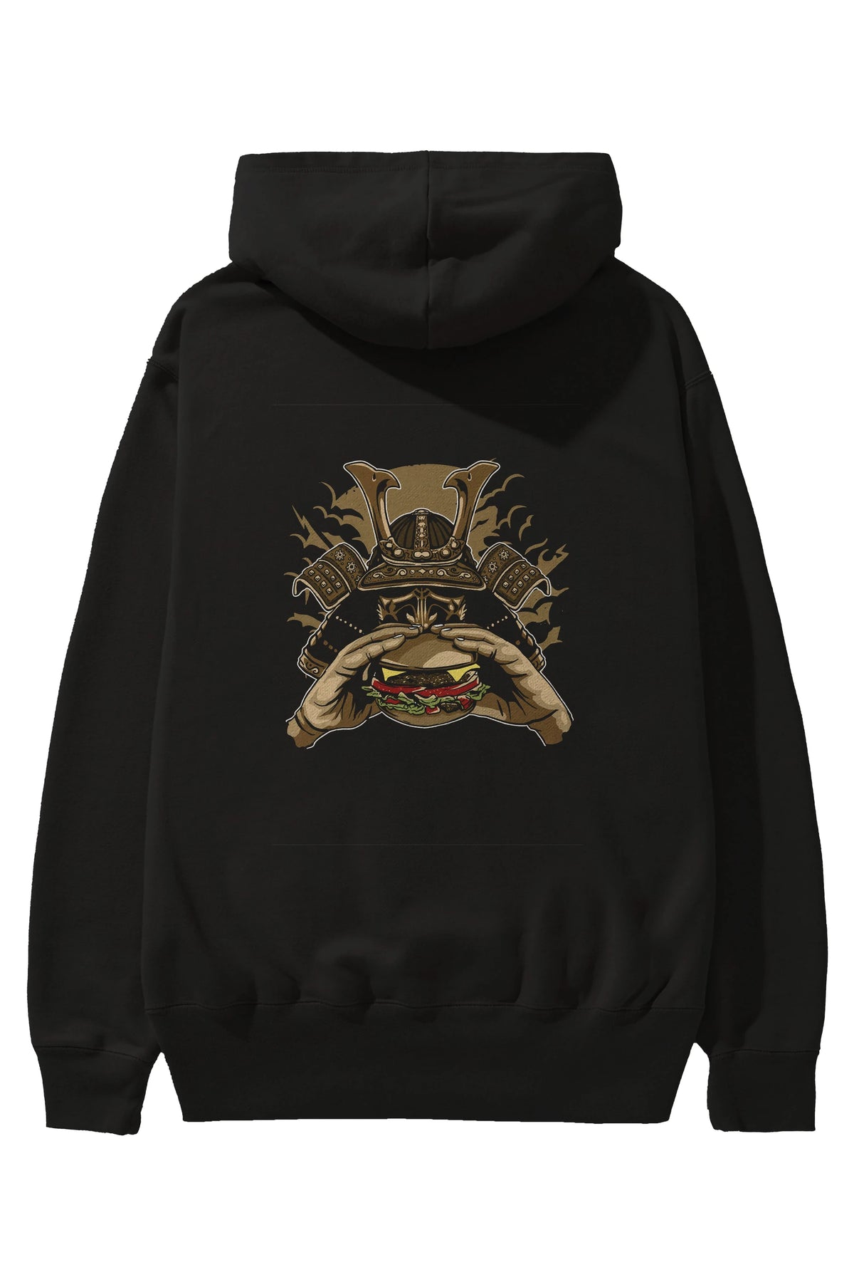 Samurai Burger Arka Baskılı Hoodie Oversize Kapüşonlu Sweatshirt Erkek Kadın Unisex