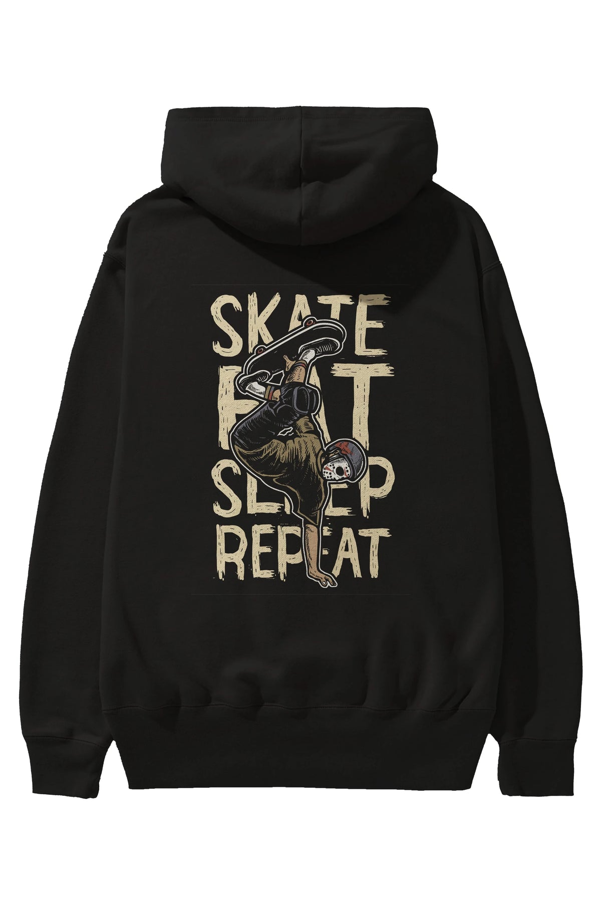 Skate Eat Sleep Repeat Arka Baskılı Hoodie Oversize Kapüşonlu Sweatshirt Erkek Kadın Unisex