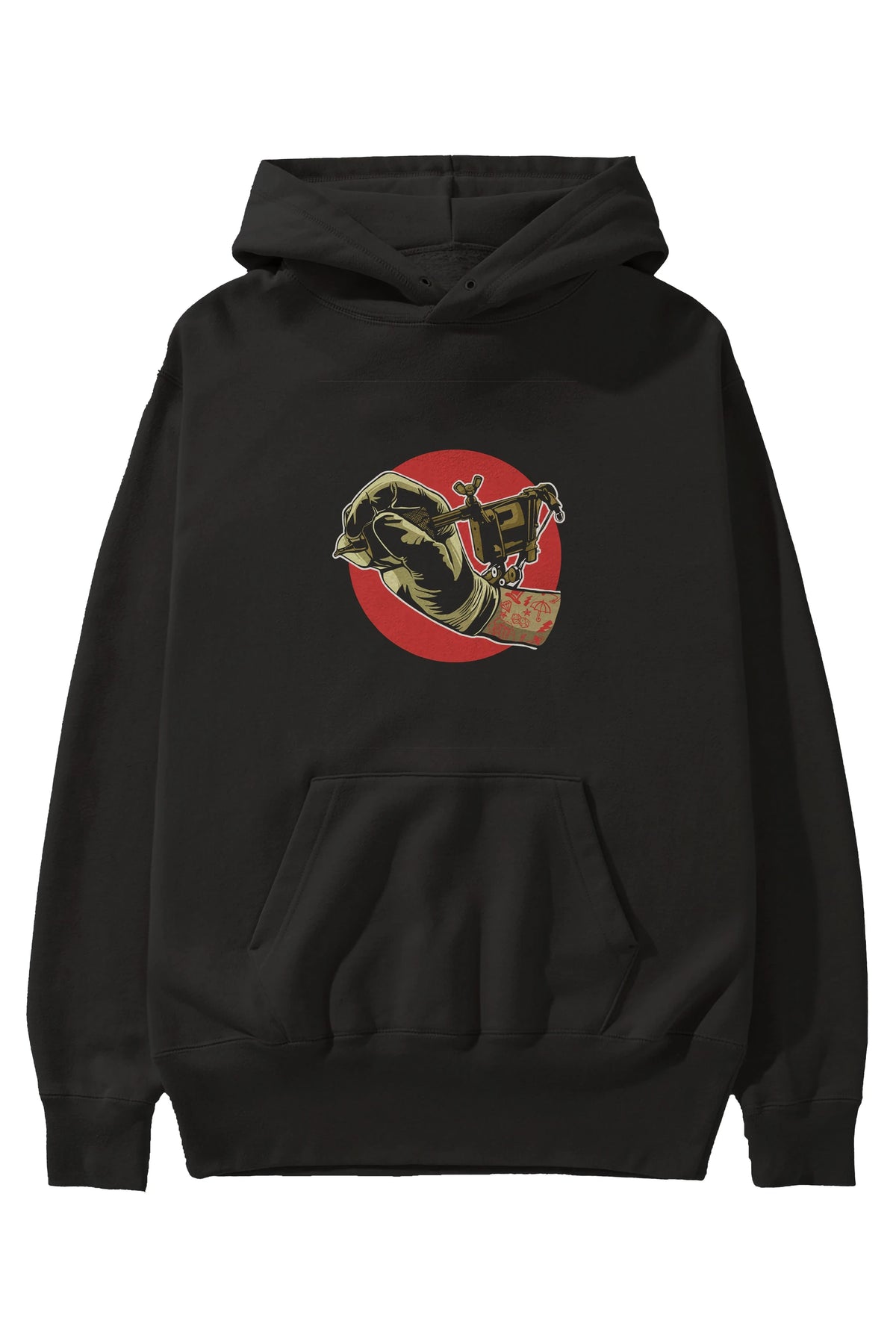 Tattoo Machine ] Ön Baskılı Hoodie Oversize Kapüşonlu Sweatshirt Erkek Kadın Unisex