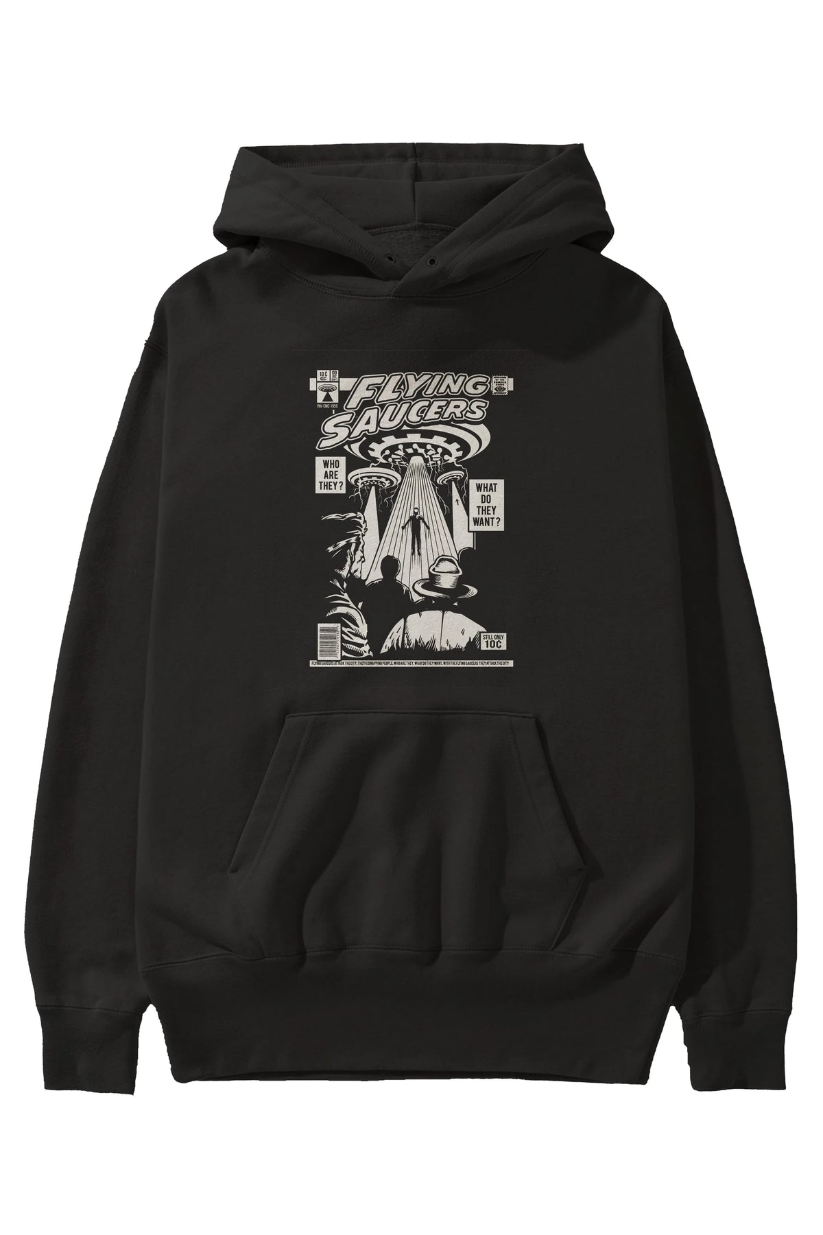 UFO Ön Baskılı Hoodie Oversize Kapüşonlu Sweatshirt Erkek Kadın Unisex