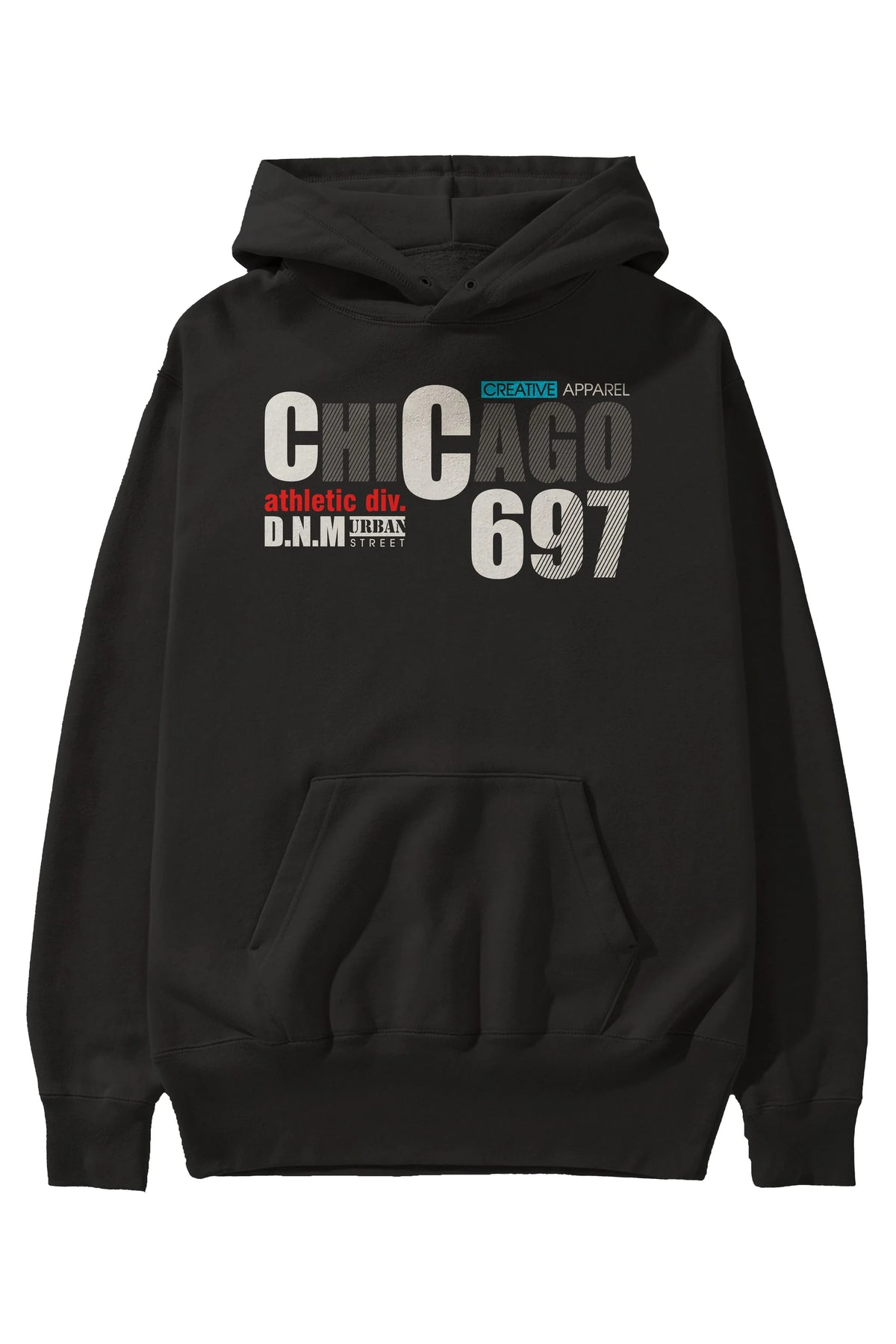 Chicago 697 Ön Baskılı Oversize Hoodie Kapüşonlu Sweatshirt Erkek Kadın Unisex