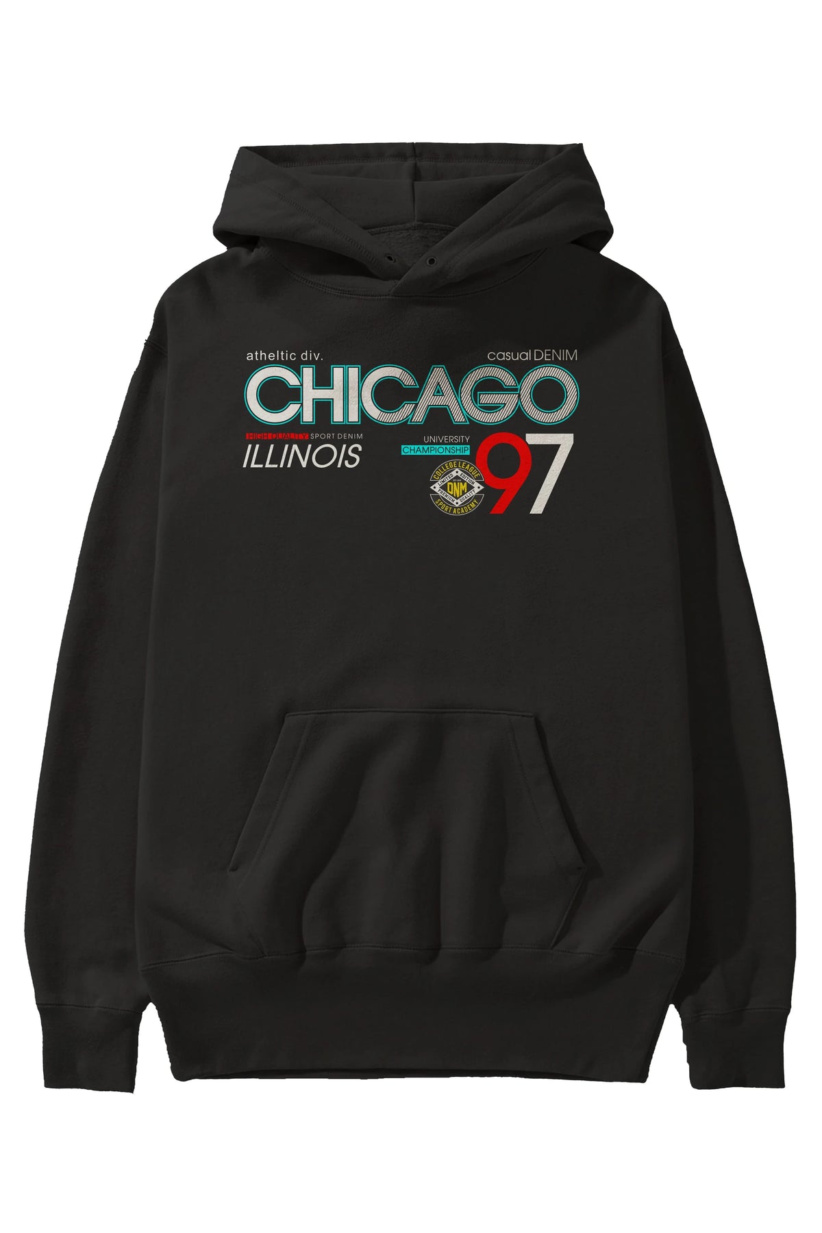 Chicago 97 Ön Baskılı Oversize Hoodie Kapüşonlu Sweatshirt Erkek Kadın Unisex