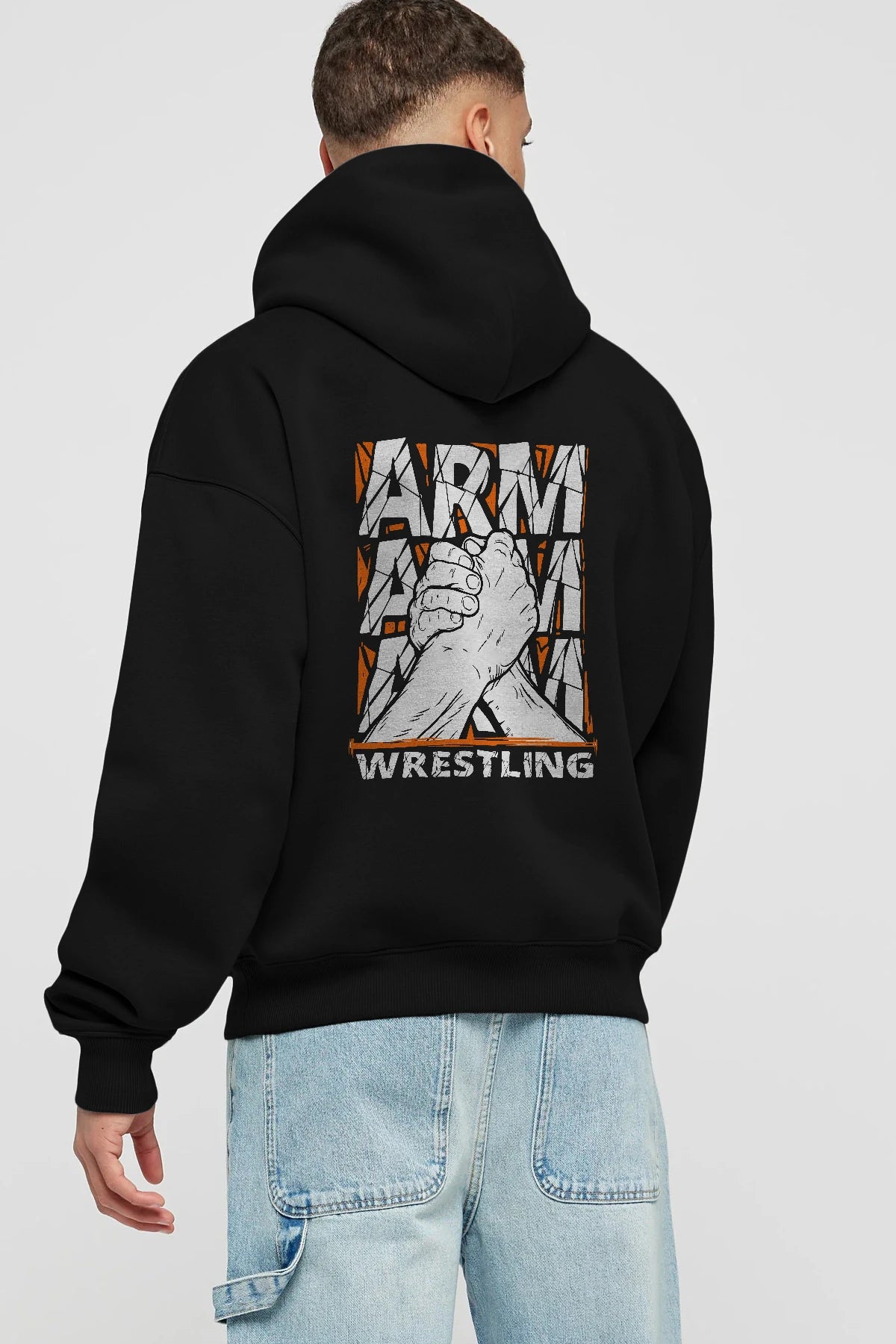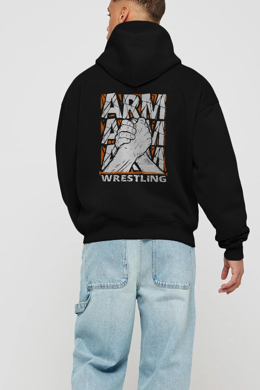 Arm Wrestling Arka Baskılı Hoodie Oversize Kapüşonlu Sweatshirt Erkek Kadın Unisex