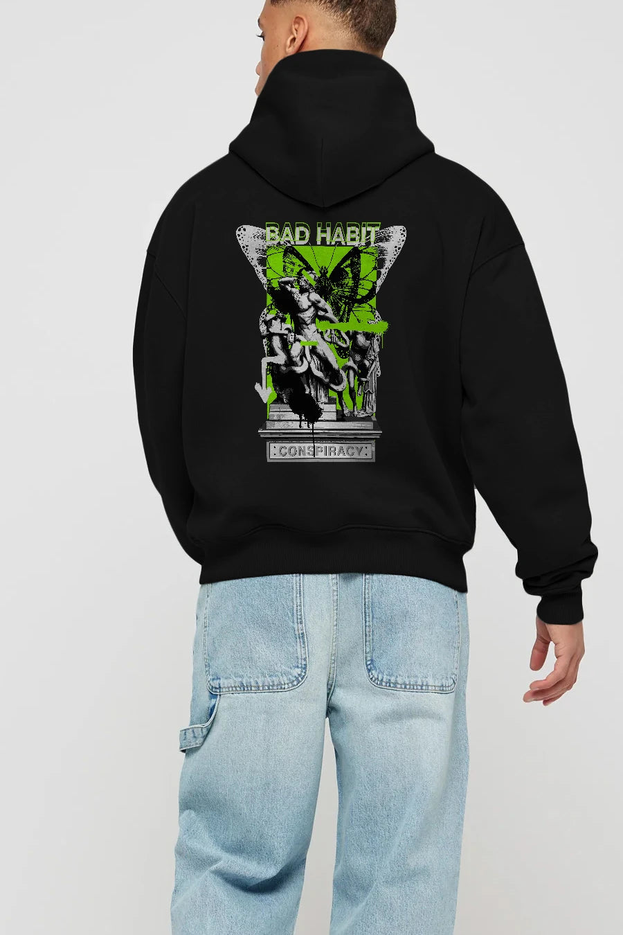 Bad Habit Arka Baskılı Hoodie Oversize Kapüşonlu Sweatshirt Erkek Kadın Unisex