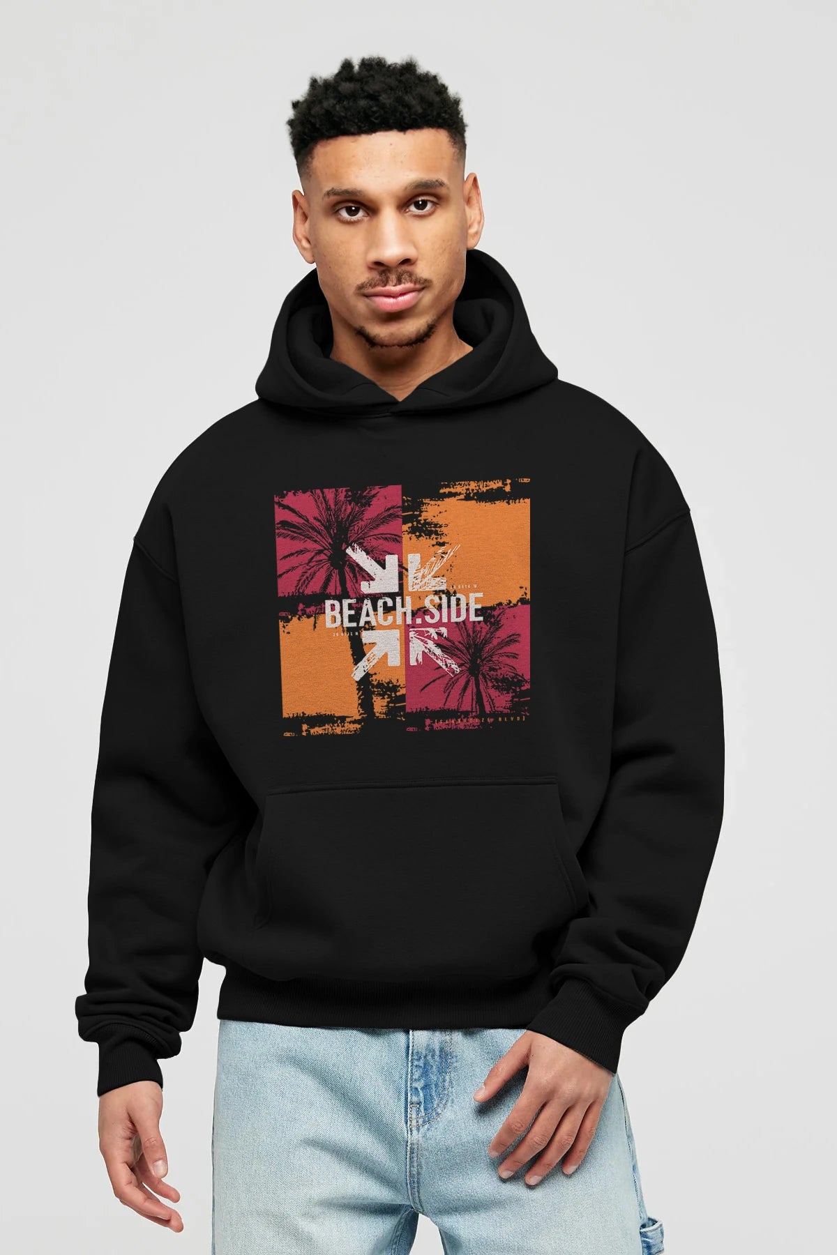 Beach Side Ön Baskılı Hoodie Oversize Kapüşonlu Sweatshirt Erkek Kadın Unisex