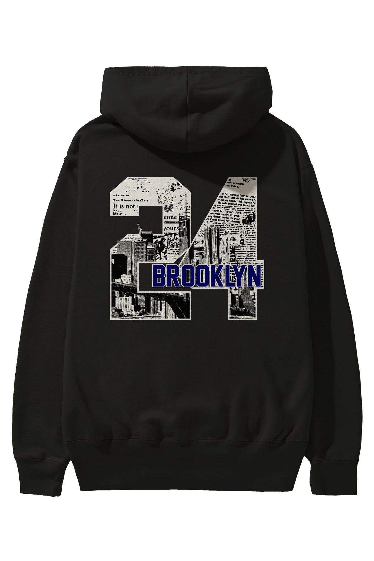 Brooklyn 24 Arka Baskılı Hoodie Oversize Kapüşonlu Sweatshirt Erkek Kadın Unisex