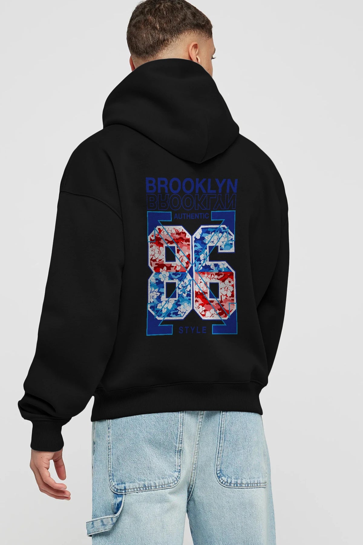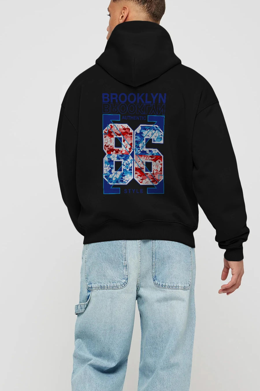 Brooklyn 86 Style Arka Baskılı Hoodie Oversize Kapüşonlu Sweatshirt Erkek Kadın Unisex