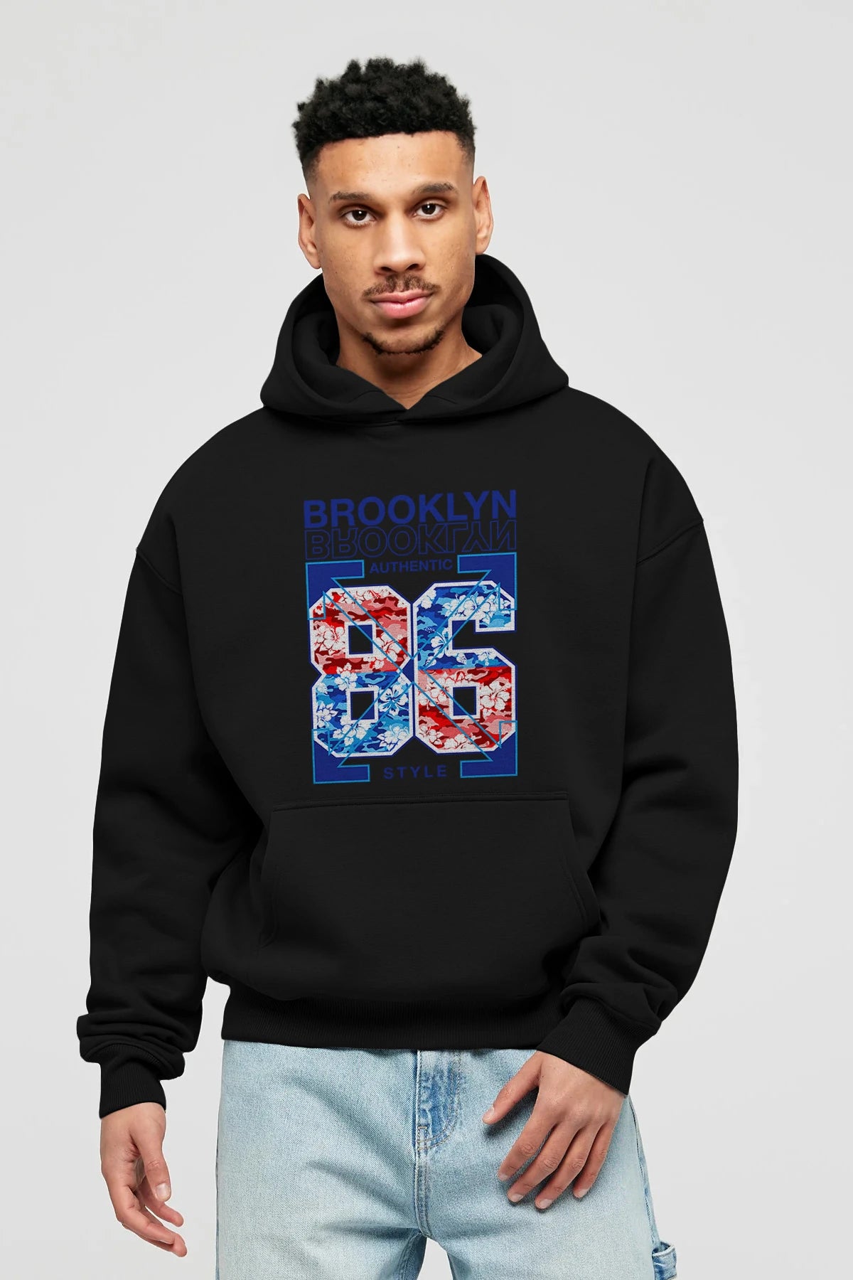 Brooklyn 86 Style Ön Baskılı Hoodie Oversize Kapüşonlu Sweatshirt Erkek Kadın Unisex