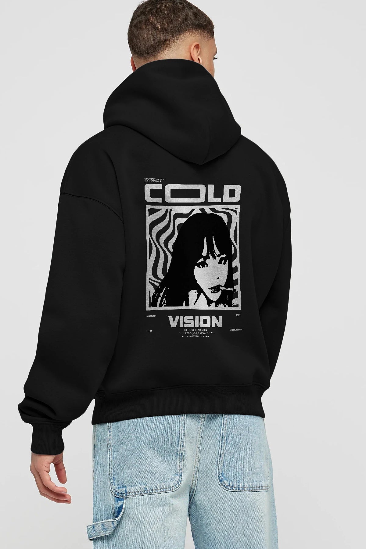 Cold Vision Arka Baskılı Hoodie Oversize Kapüşonlu Sweatshirt Erkek Kadın Unisex