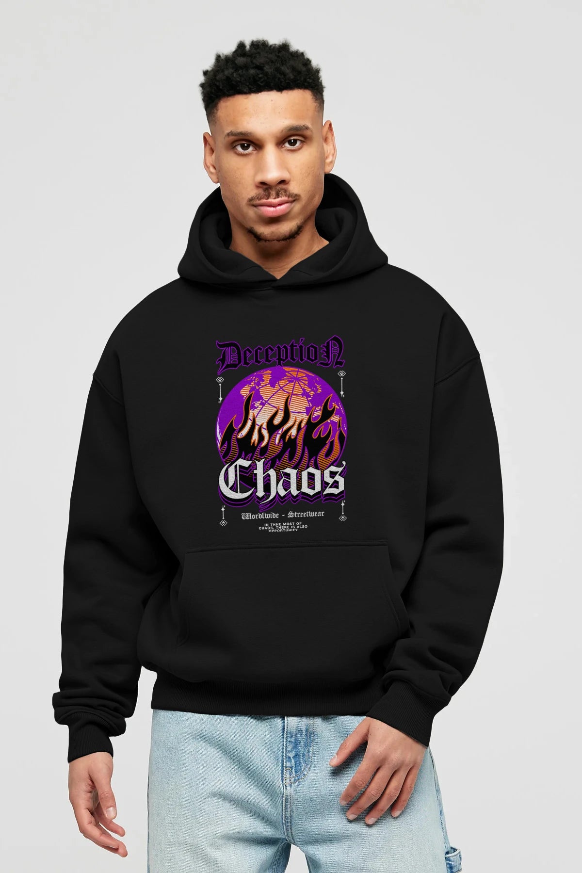 Deception Chaos Ön Baskılı Hoodie Oversize Kapüşonlu Sweatshirt Erkek Kadın Unisex