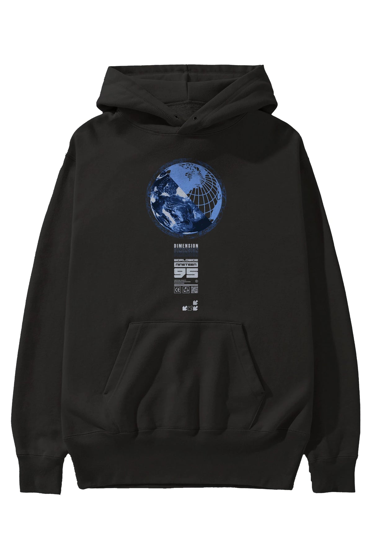 Dimension 95 Ön Baskılı Hoodie Oversize Kapüşonlu Sweatshirt Erkek Kadın Unisex