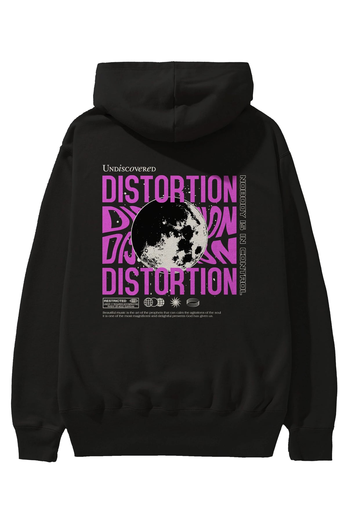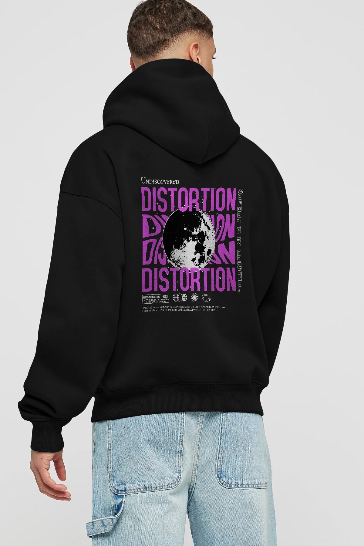 Distortion Arka Baskılı Hoodie Oversize Kapüşonlu Sweatshirt Erkek Kadın Unisex