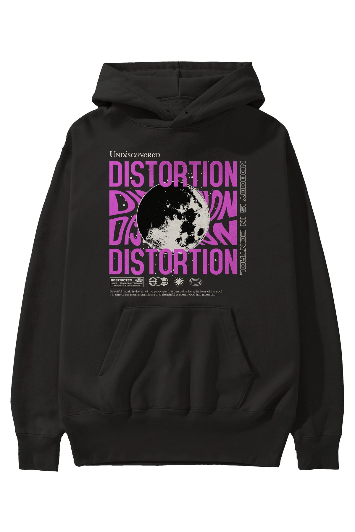 Distortion Ön Baskılı Hoodie Oversize Kapüşonlu Sweatshirt Erkek Kadın Unisex