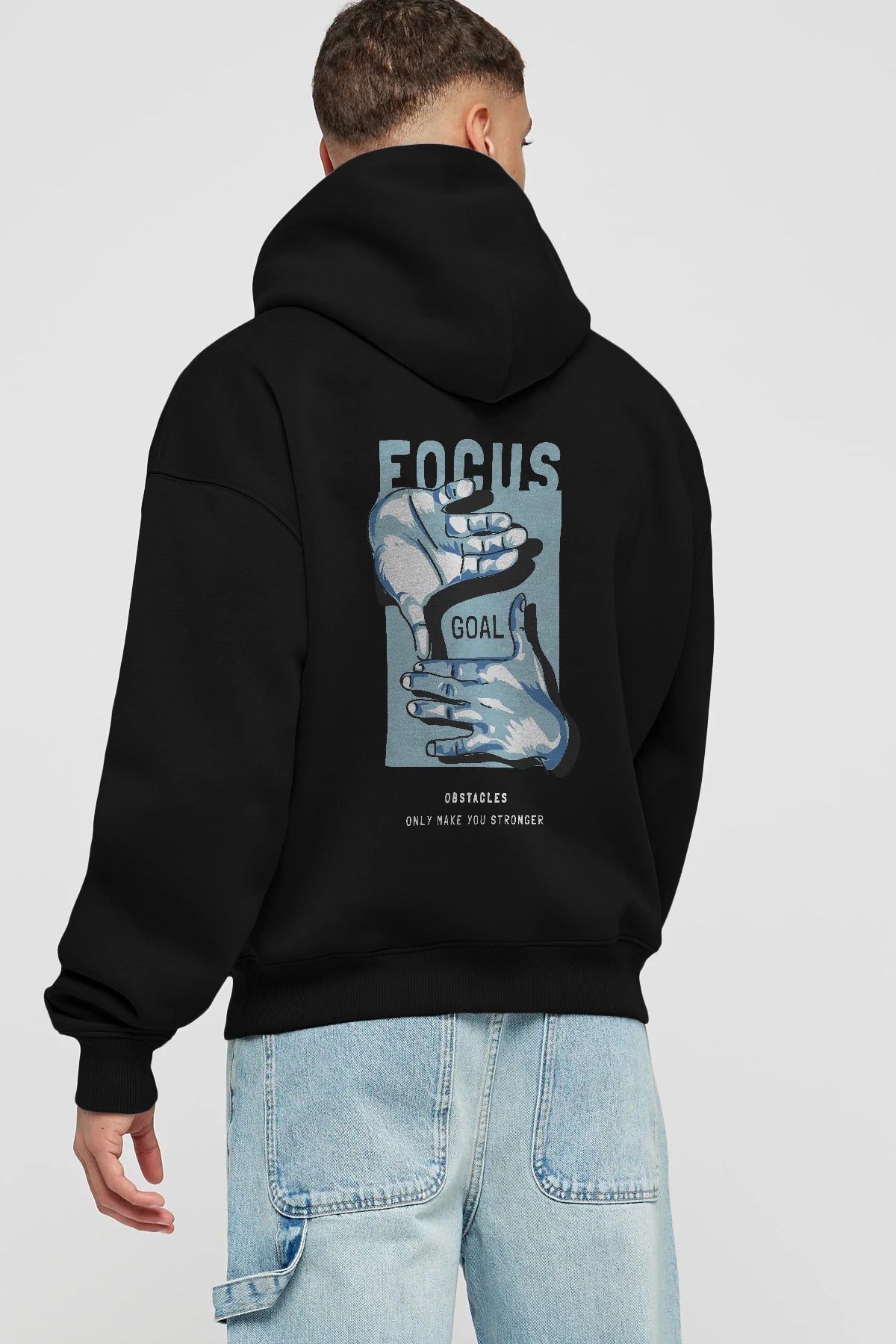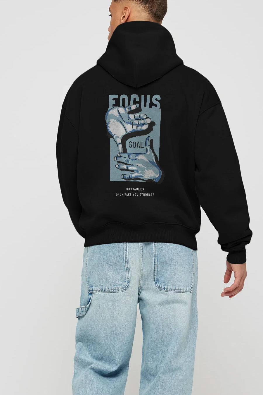 Focus Goal Arka Baskılı Hoodie Oversize Kapüşonlu Sweatshirt Erkek Kadın Unisex