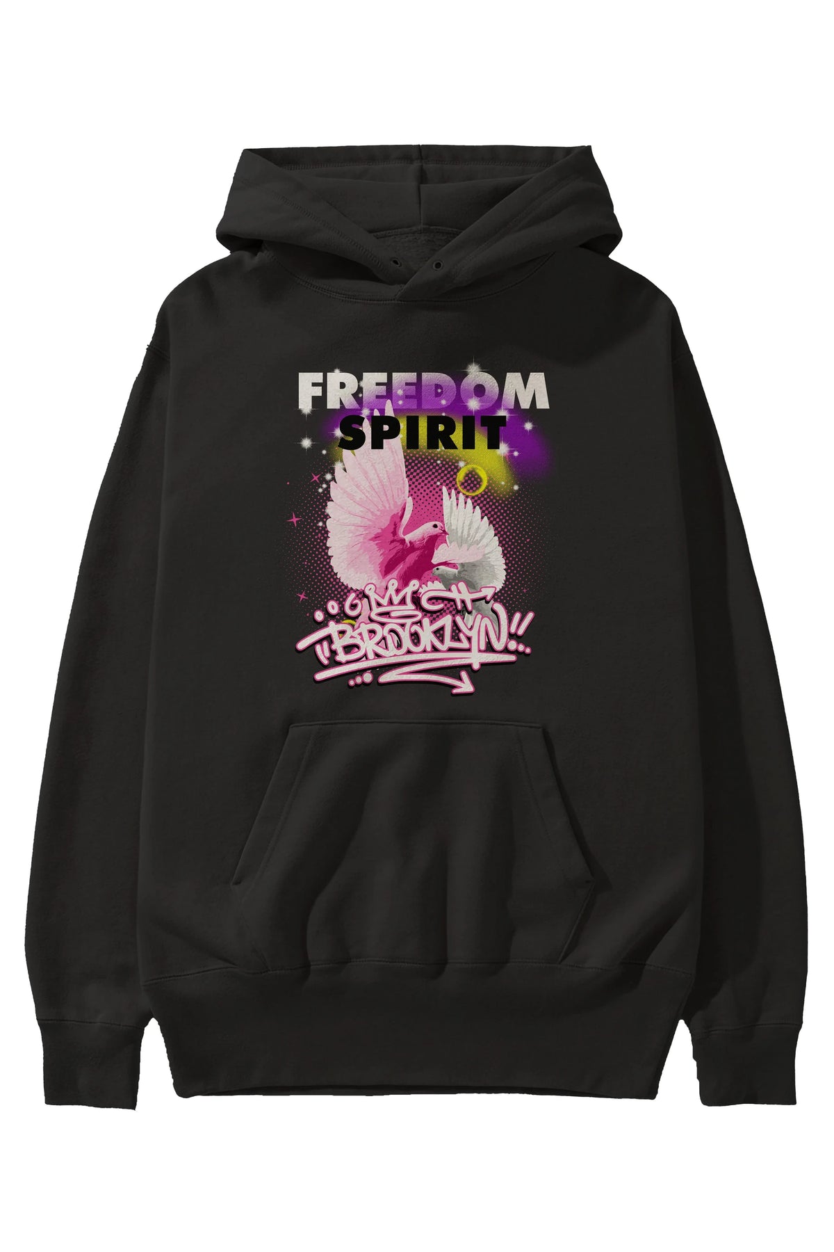 Freedom Spirit Brooklyn Ön Baskılı Hoodie Oversize Kapüşonlu Sweatshirt Erkek Kadın Unisex