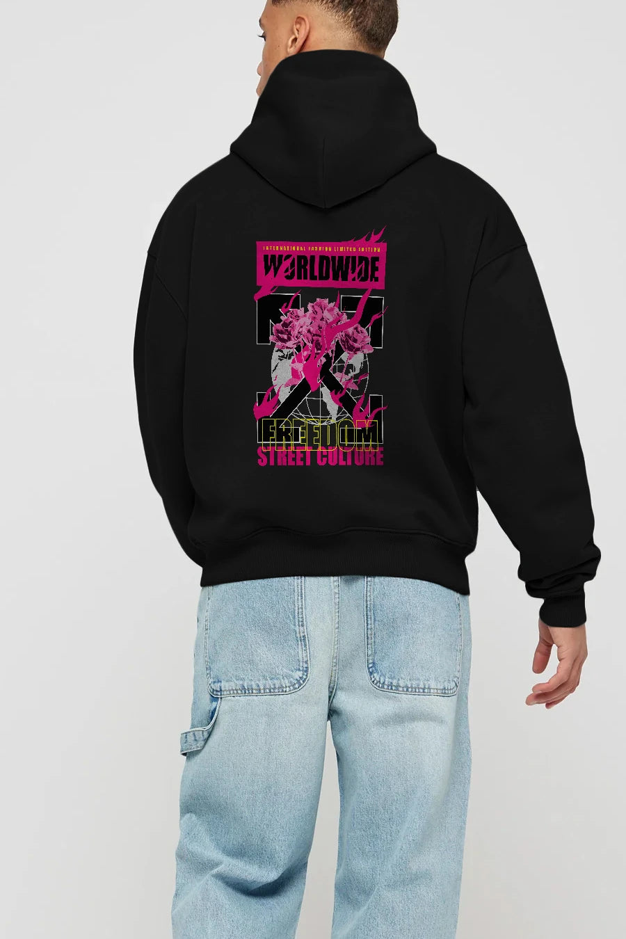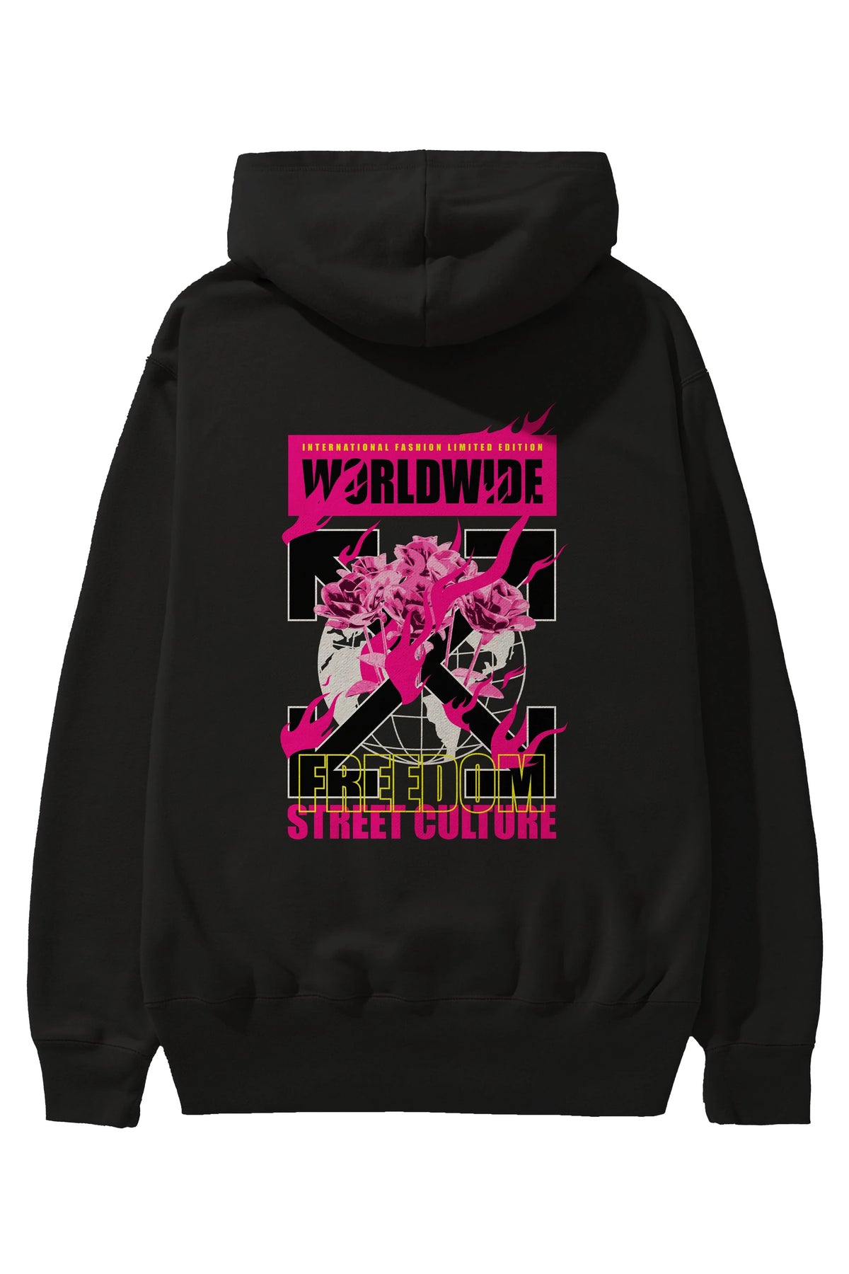 Freedom Street Culture Arka Baskılı Hoodie Oversize Kapüşonlu Sweatshirt Erkek Kadın Unisex