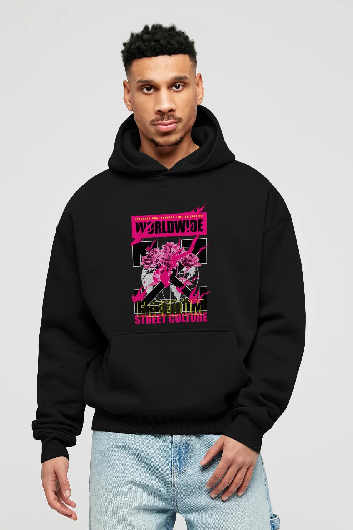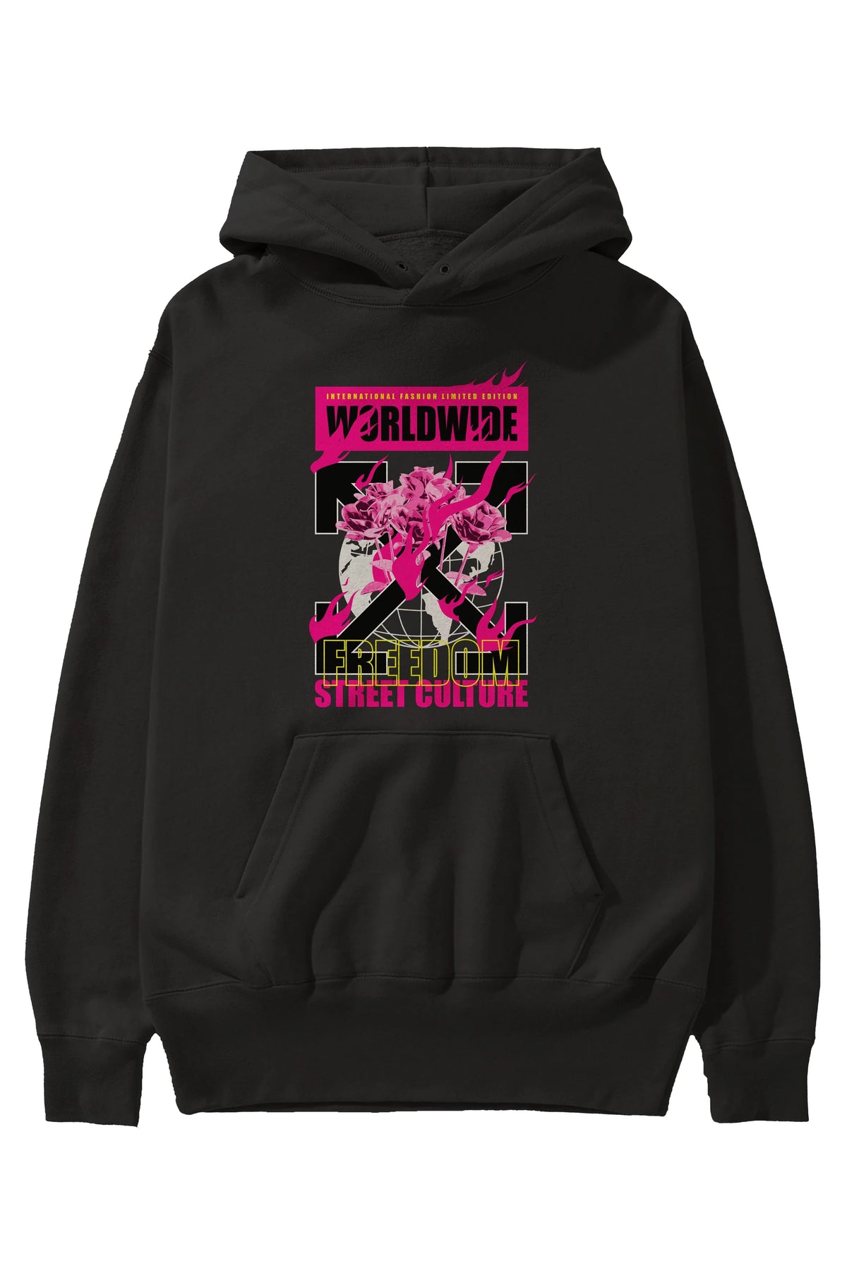 Freedom Street Culture Ön Baskılı Hoodie Oversize Kapüşonlu Sweatshirt Erkek Kadın Unisex