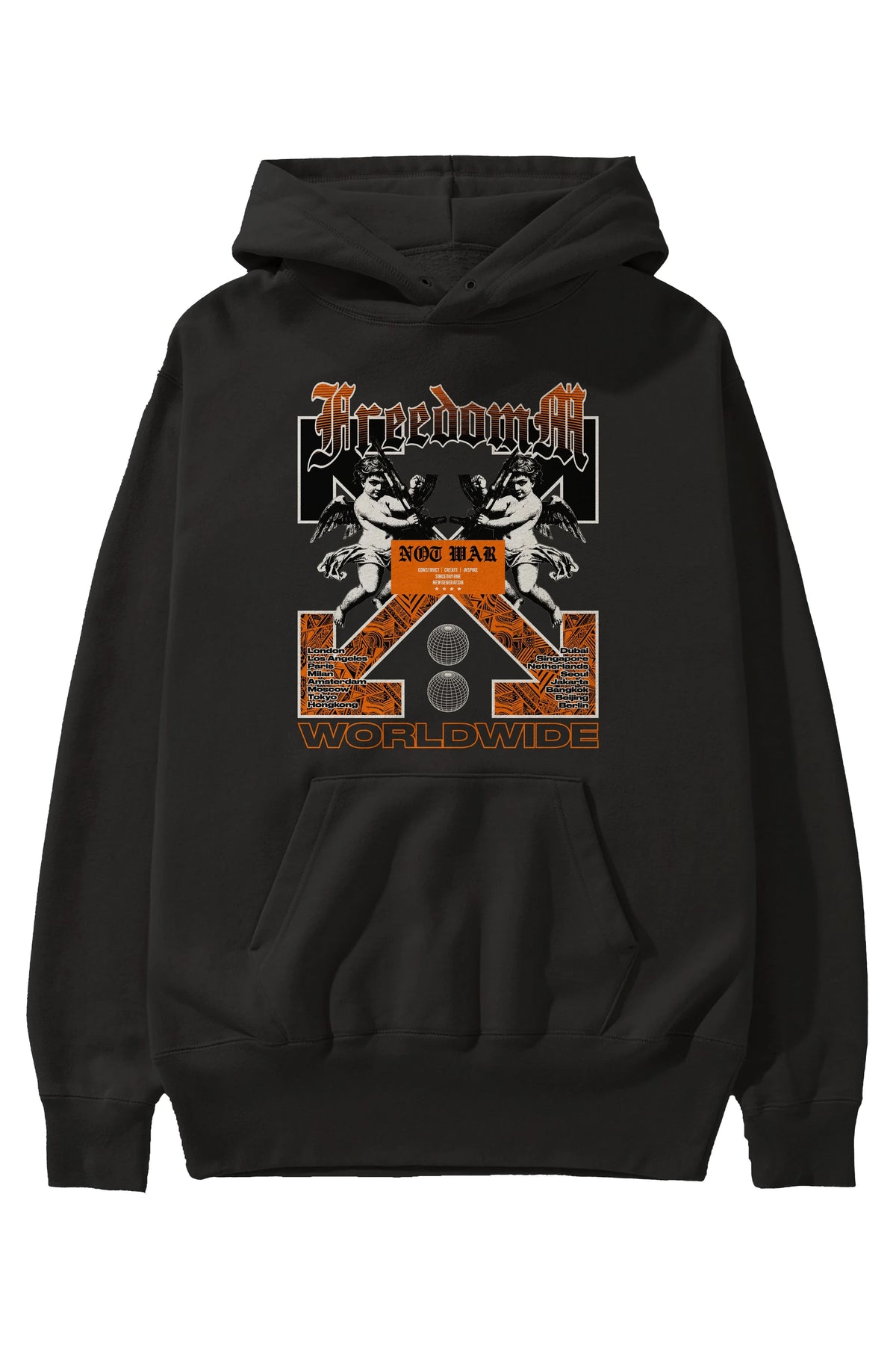 Freedom Worldwide Ön Baskılı Hoodie Oversize Kapüşonlu Sweatshirt Erkek Kadın Unisex