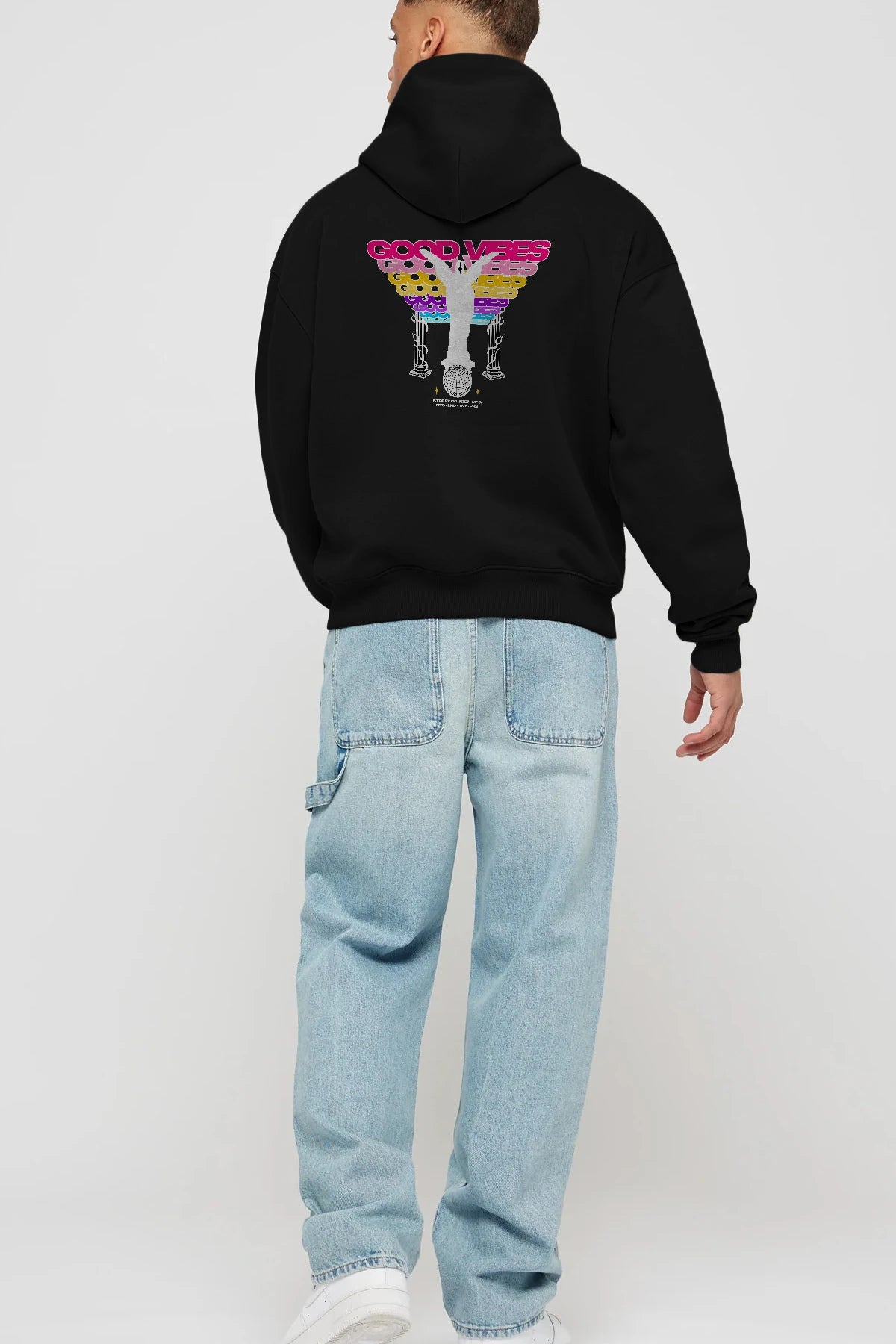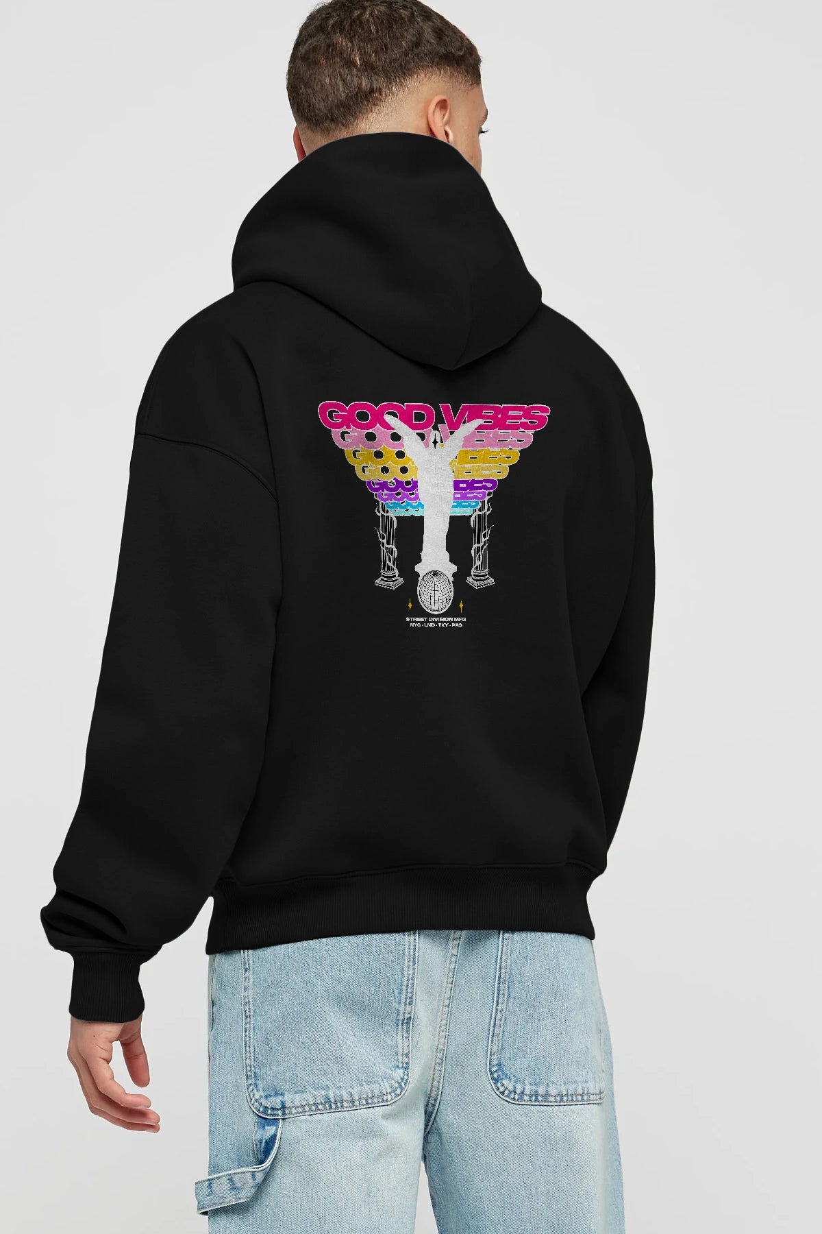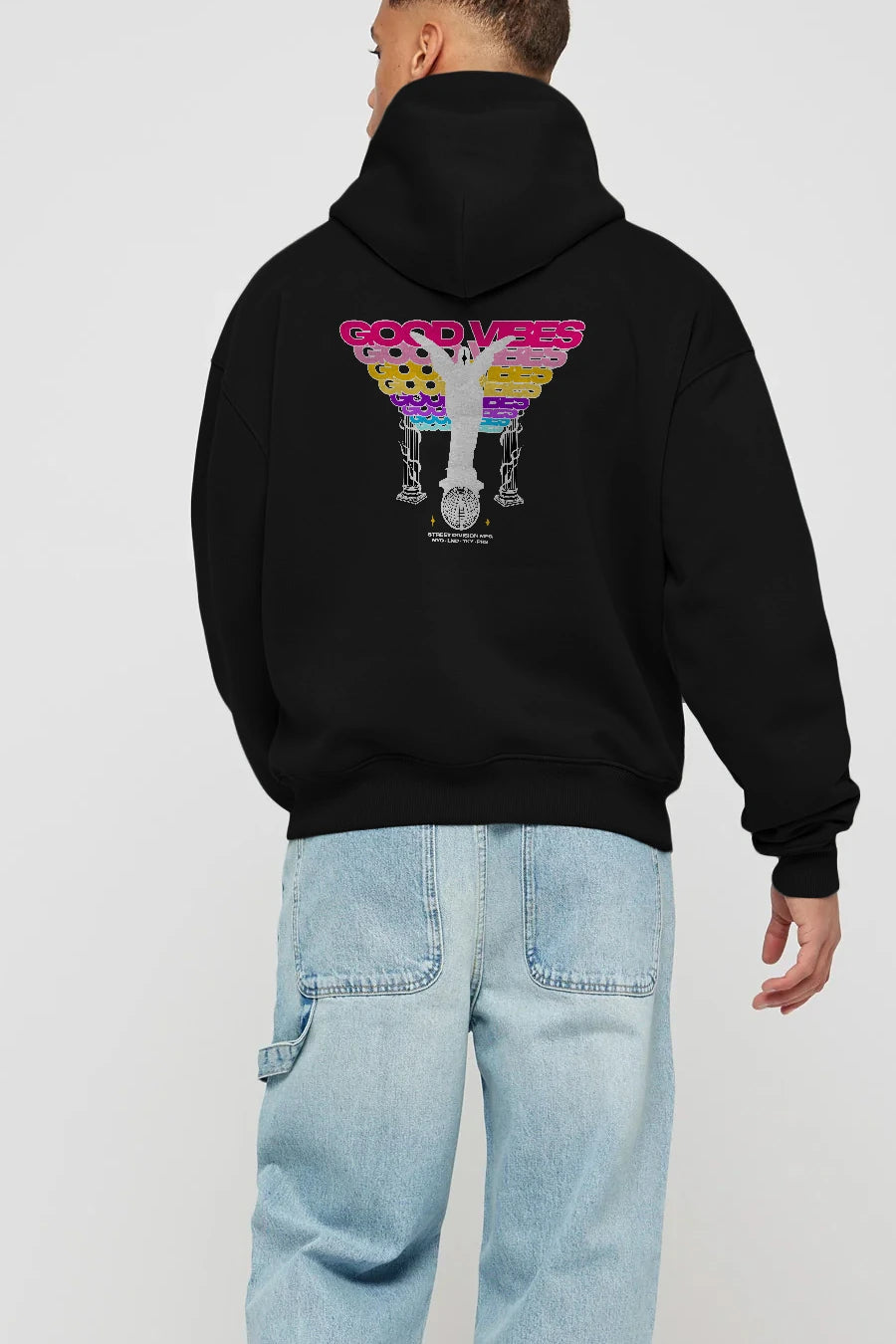 Good Vibes Arka Baskılı Hoodie Oversize Kapüşonlu Sweatshirt Erkek Kadın Unisex