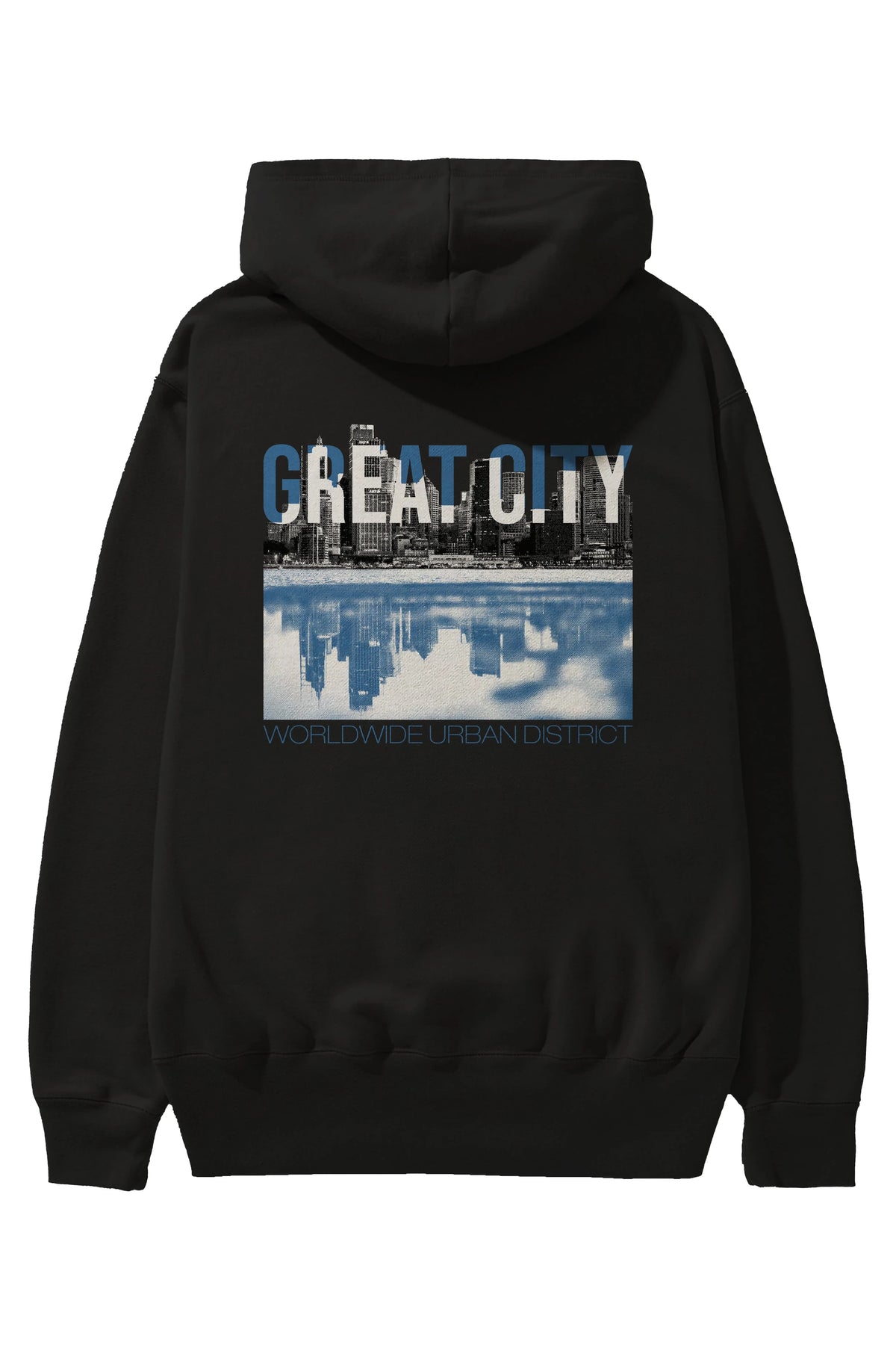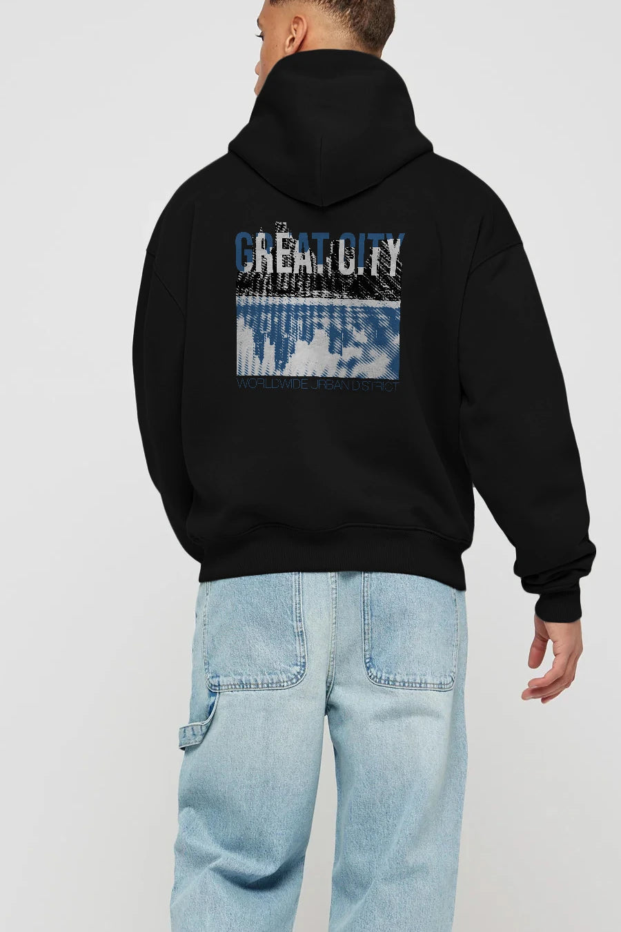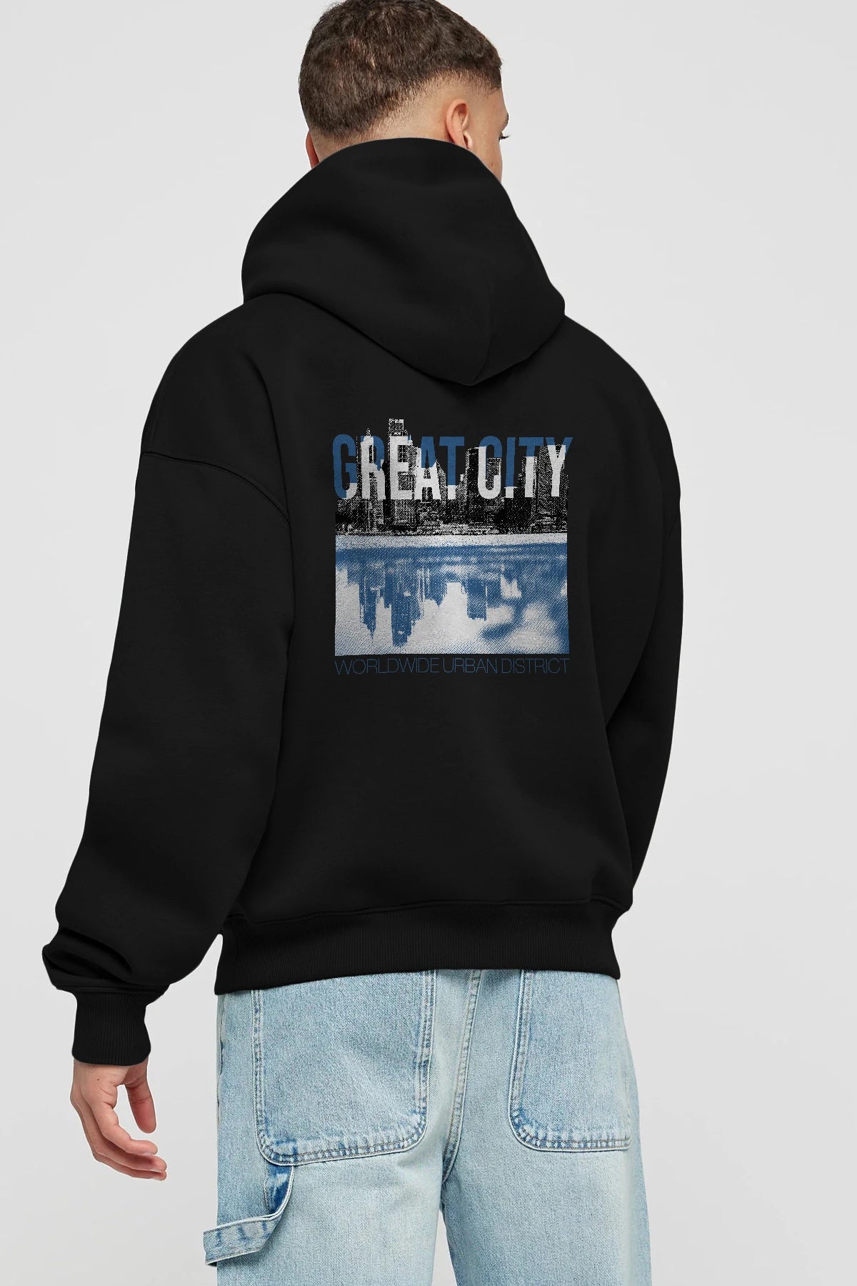 Great City Arka Baskılı Hoodie Oversize Kapüşonlu Sweatshirt Erkek Kadın Unisex